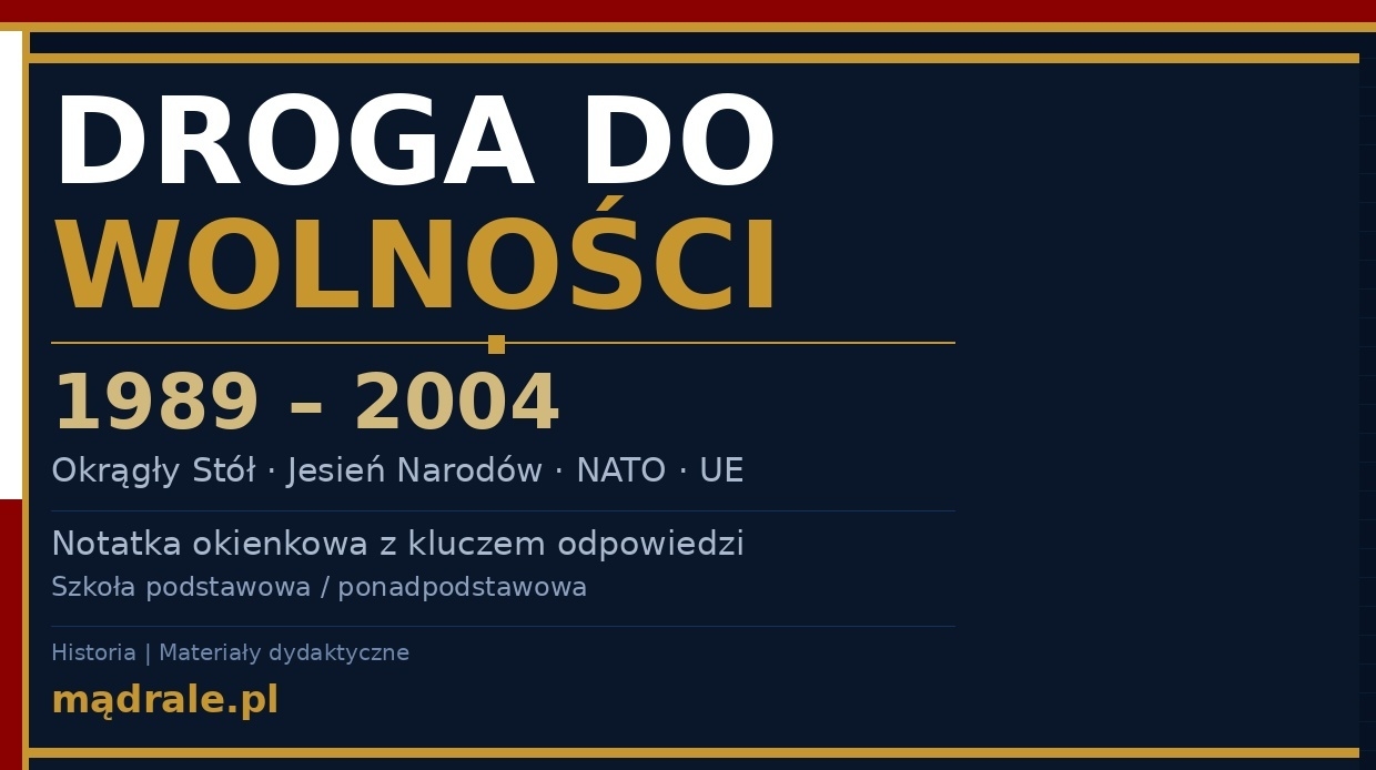 🧩 Notatkę okienkową dotyczącą przemian politycznych i społecznych w Polsce w latach 1989–2004 (m.in. upadek komunizmu, transformacja ustrojowa, integracja z Zachodem).