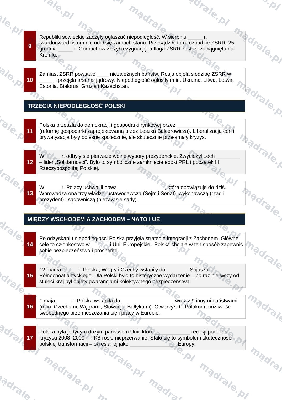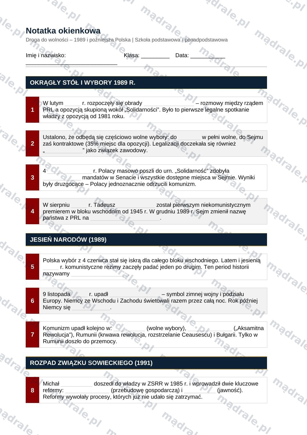 🎓 Zestaw kluczowych pojęć, dat i postaci, które pomagają uporządkować wiedzę o najnowszej historii Polski.
