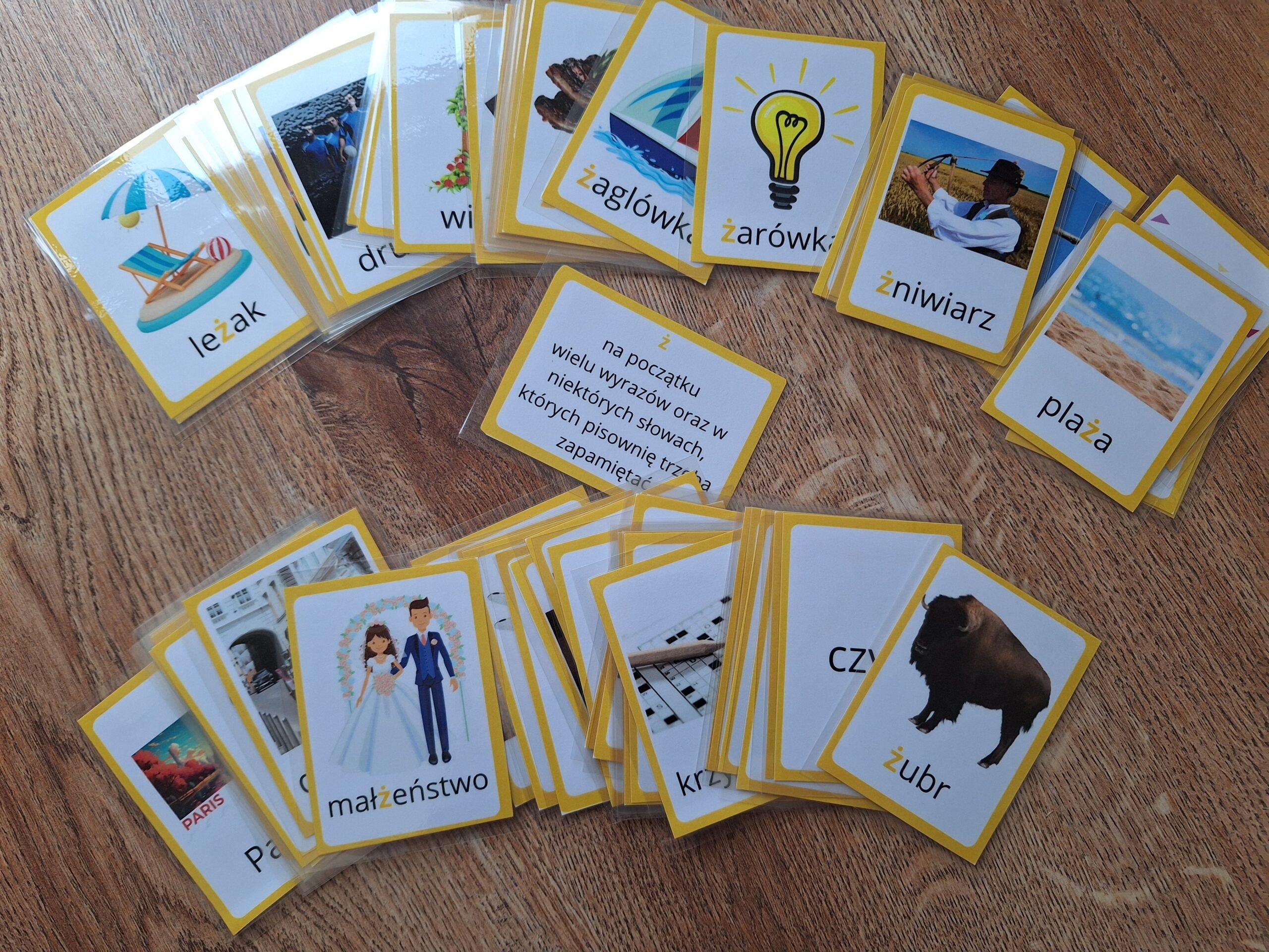 Karty można wykorzystać również do nauki alfabetu oraz układania wyrazów w kolejności alfabetycznej.