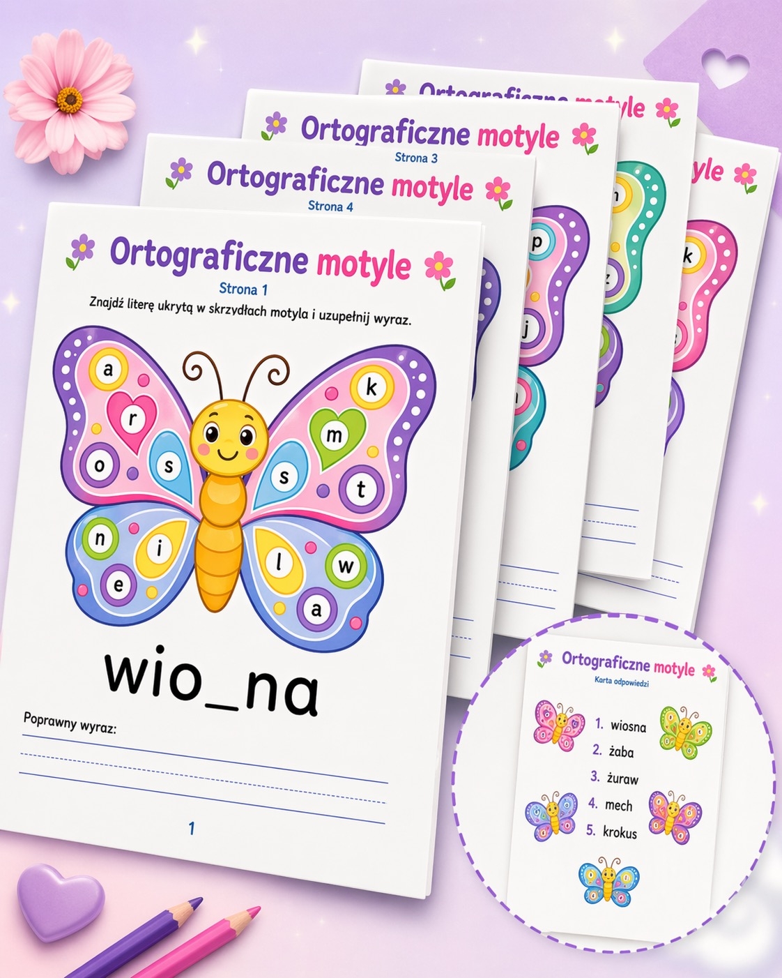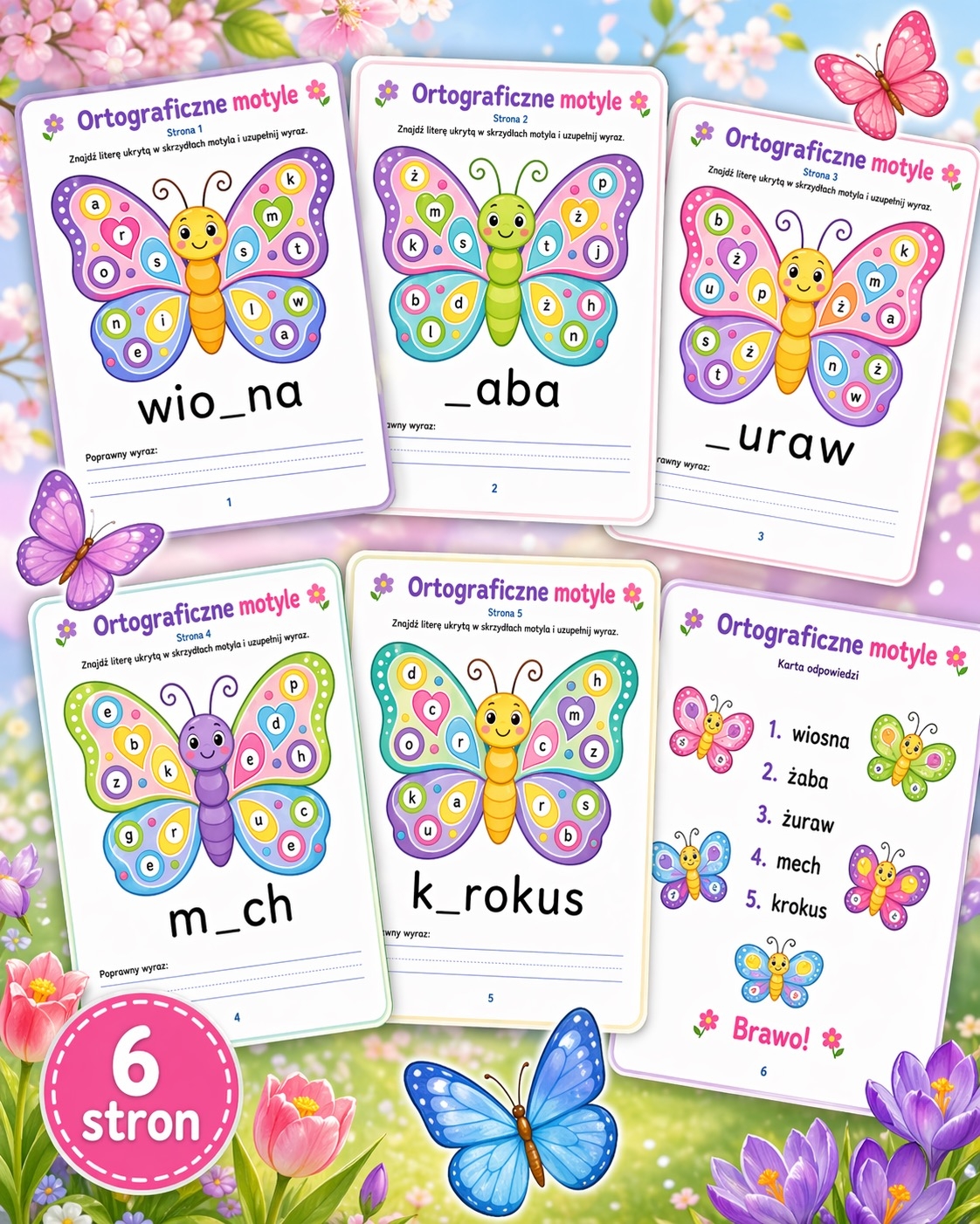 Kolorowe motyle i ukryte litery sprawiają, że nauka ortografii staje się dla dzieci ciekawsza i bardziej atrakcyjna. 🦋💛