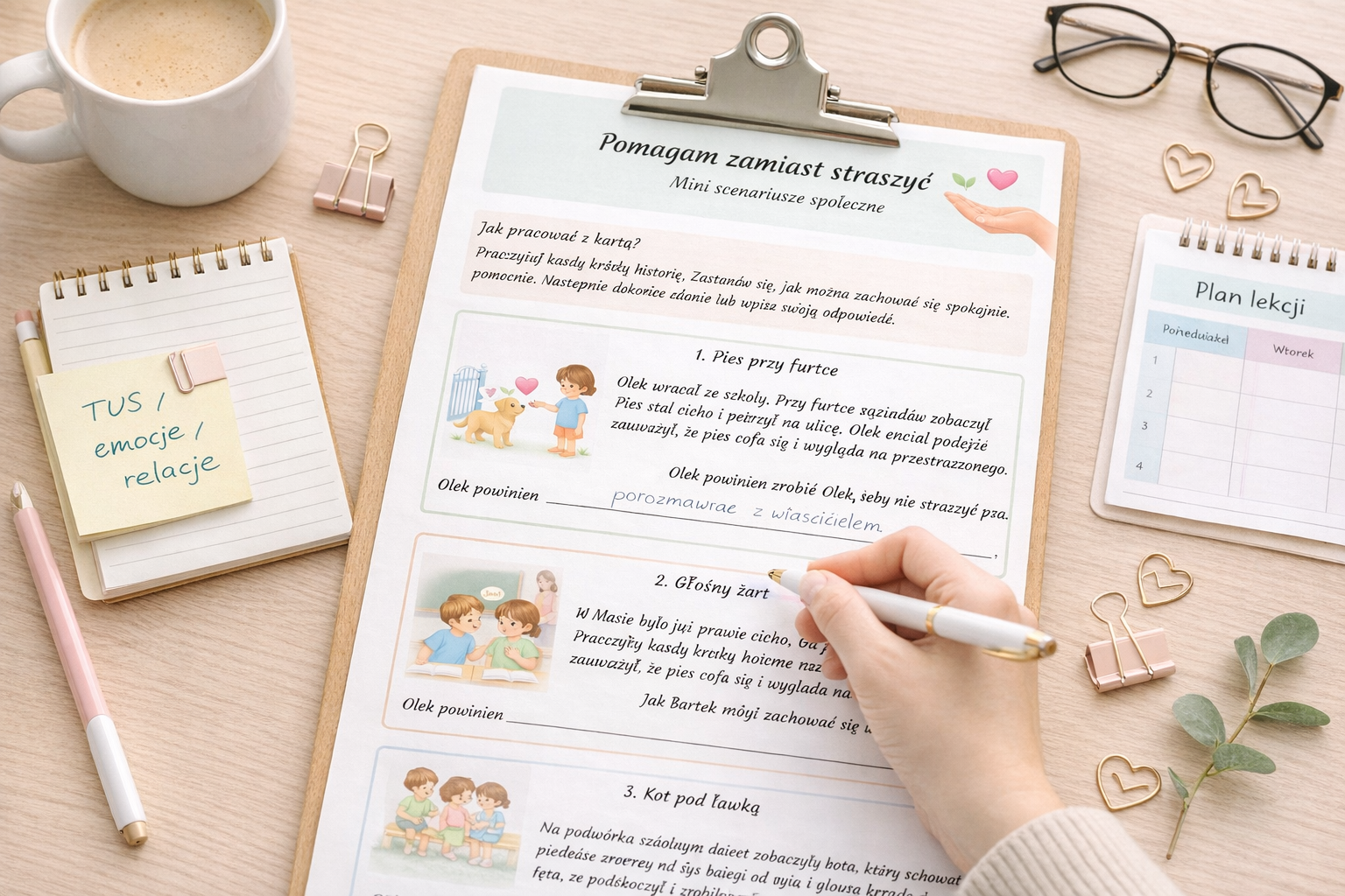 #kartypracy #scenariuszespołeczne #TUS #emocje #kompetencjespołeczne #edukacjawczesnoszkolna #przedszkole #materiałydlanauczycieli #pomocedydaktyczne #terapiapedagogiczna #psychologszkolny #pedagogspecjalny #empatia #relacje #bezpieczeństwo #życiwszkolna #naukaemocji #drukowalne #PDFdladzieci #pomagamzamiaststraszyć