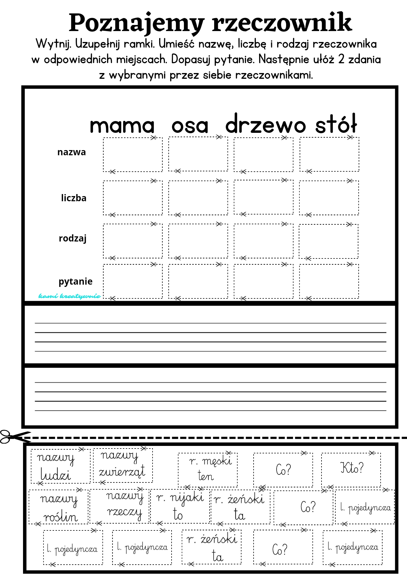Określamy: rodzaj, liczbę, dopasowujemy nazwę i pytanie.