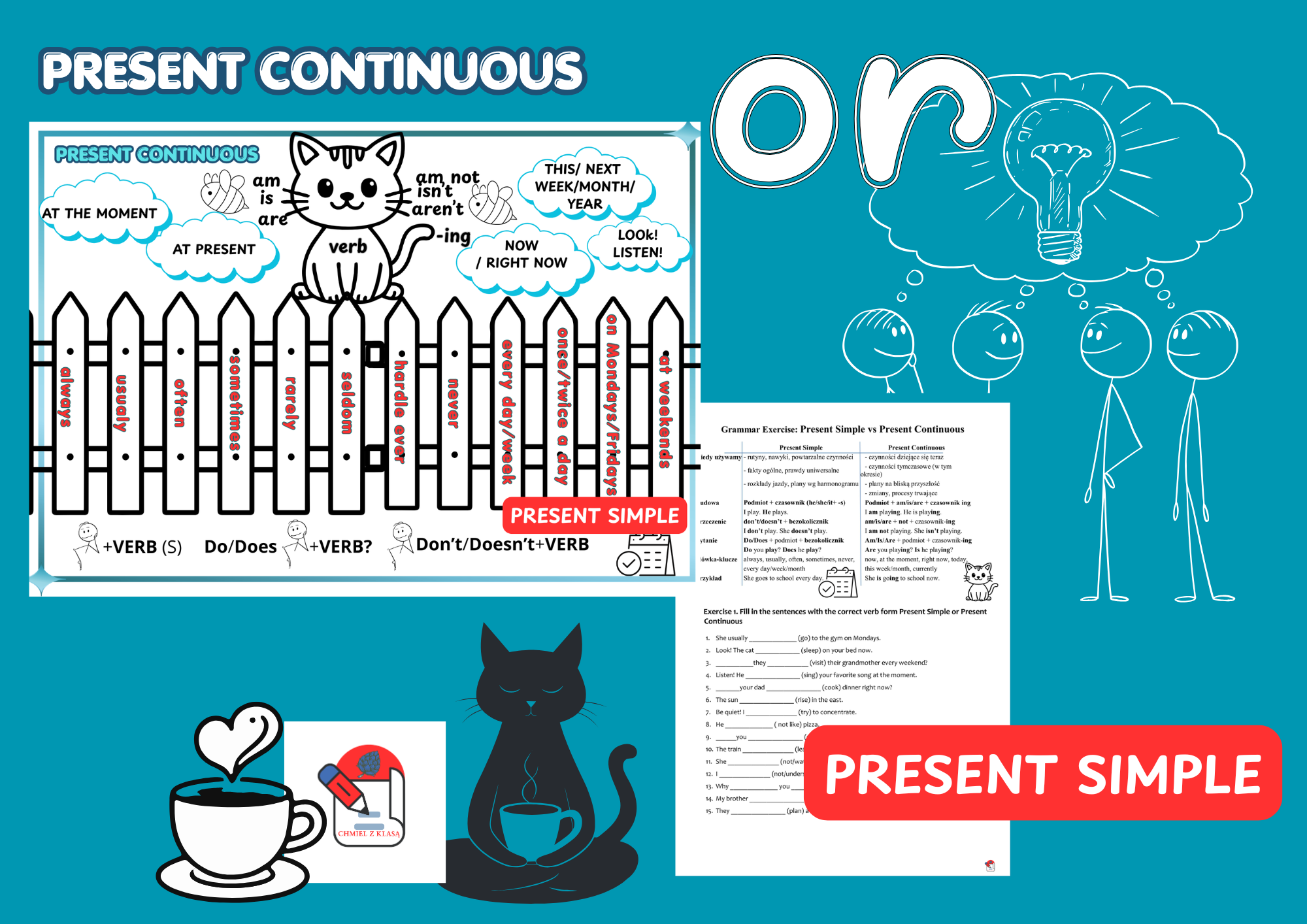 PRESENT SIMPLE or PRESENT CONTINIUOS - wklajka, ćwiczenie, tabela