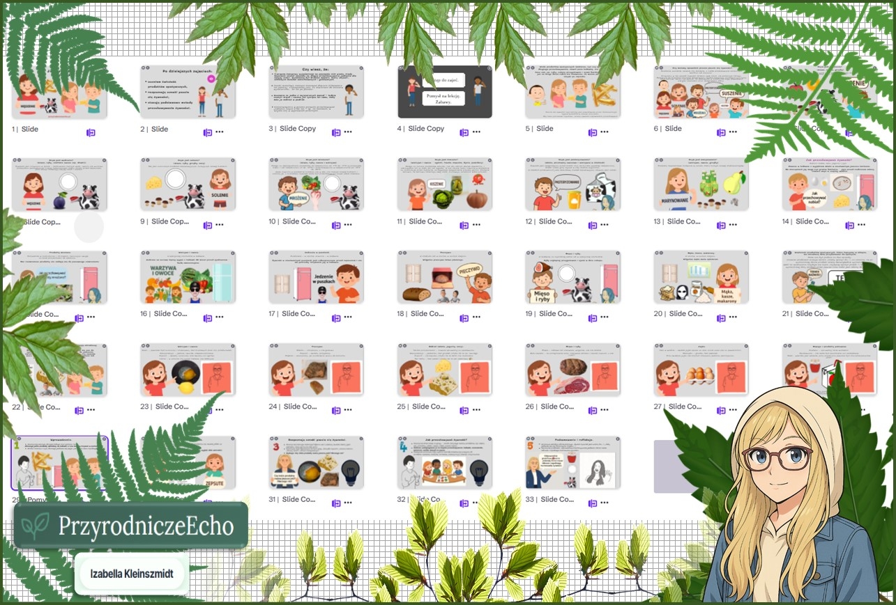 Witajcie Nazywam się Izabella Kleinszmidt (PrzyrodniczeEcho). Jestem nauczycielem przyrody, biologii, geografii i chemii w szkole podstawowej w Pomysku Wielkim. Uwielbiam mój zawód i cieszę się, że robię w życiu to co kocham. Pasja dla nauczyciela jest bardzo ważna:). Prowadzę stronę PrzyrodniczeEcho na FB, stronę internetową przyrodniczeecho.pl, nagrywam filmiki do lekcji, konstruuję prezentacje i lekcje multimedialne, escape roomy oraz sketchnotki i karty pracy w programie power point i genial.ly. Zapraszam na stronę internetową mojej szkoły, gdzie znajdują się (niektóre darmowe) opracowania lekcji do przyrody, biologii, geografii i chemii w SP. Adres strony internetowej: https://sppomyskwielki.edu.pl - zakładka - dla ucznia. Od niedawna zapraszam również na moją stronę internetową: przyrodniczecho.pl Zapraszam do korzystania z mojej pracy:) Bardzo proszę również czytać opisy, aby wiedzieć, jaki materiał znajduje się w danym pliku. Zachęcam do kontaktu w razie jakichś pytań lub błędów w pomocach - brakach lub literówkach-wszystko można naprawić? Jakich materiałów możecie Państwo oczekiwać? SKETCHNOTKA - notatka kompletna z określonego tematu, KARTA PRACY - zazwyczaj sketchnotka z wykropkowanymi miejscami, PREZENTACJA MULTIMEDIALNA - kompletne wiadomości do odpowiedniego tematu wraz z grafiką i tekstem - zarówno w power point jak i genially - tę koniecznie należy zapisać na swoim koncie! LEKCJA MULTIMEDIALNA/pomysł na lekcję - pomysł na przeprowadzenie lekcji - taki "tok lekcji" - skrócony scenariusz, Tetralogia - komplet sketchnotka, karta pracy, prezentacja multimedialna oraz pomysł na lekcję, ZESTAWY - proszę się wczytać w opis, informuję co mieści się w konkretnym zestawie:) Pozdrawiam cieplutko:)