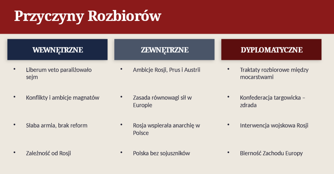 🖥️ Gotową prezentację multimedialną w programie PowerPoint dotyczącą rozbiorów Polski (m.in. przyczyny, przebieg i skutki rozbiorów).