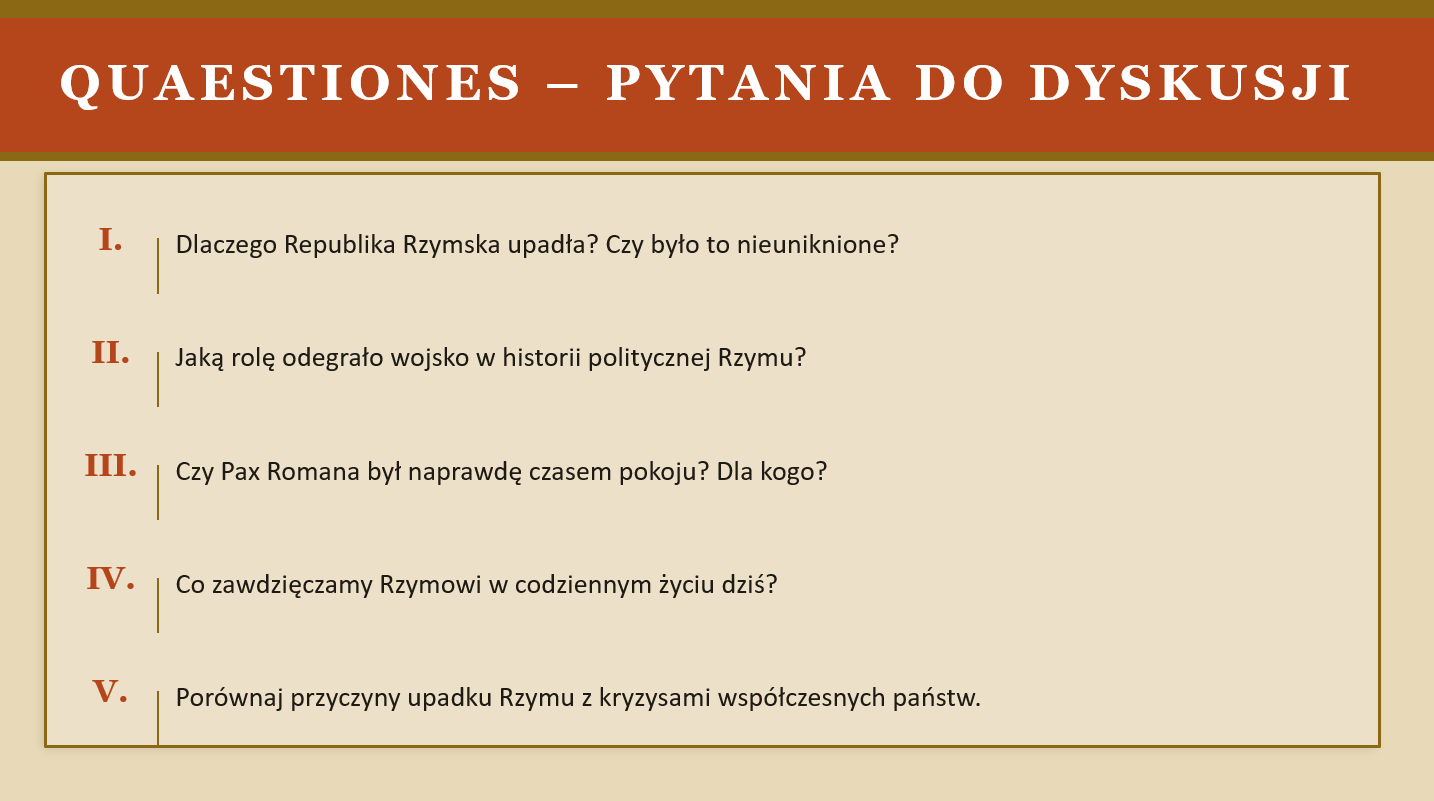 🖥️ Gotową prezentację multimedialną w programie PowerPoint dotyczącą starożytnego Rzymu (m.in. republika, cesarstwo, społeczeństwo, prawo rzymskie).