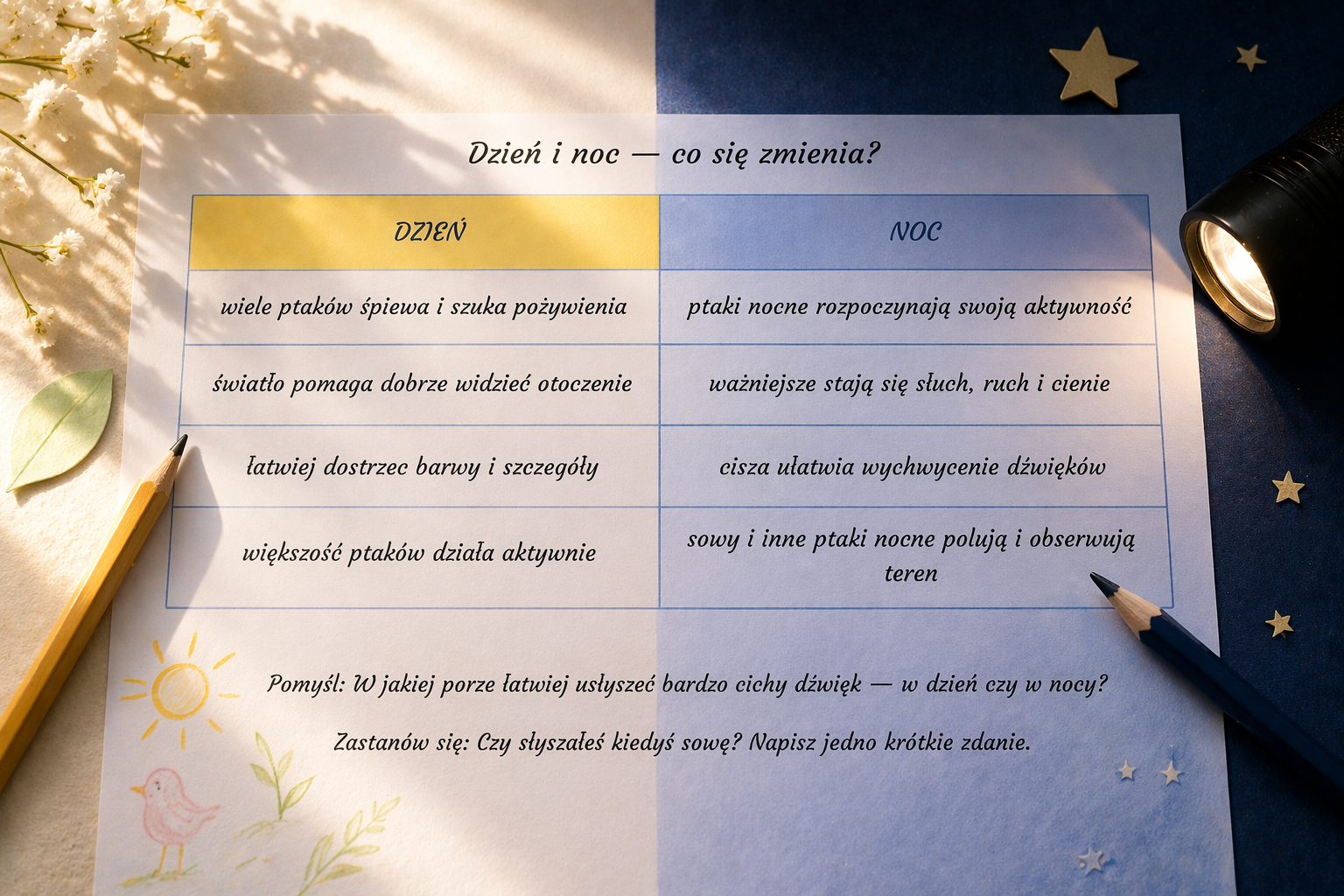 🌌 Porównanie dnia i nocy – co się zmienia w świecie ptaków