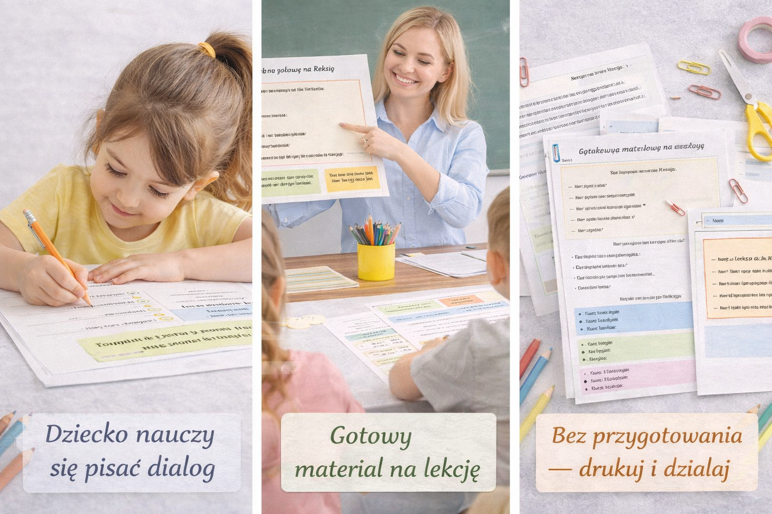 📄 Całość została zaprojektowana tak, aby dzieci uczyły się poprzez działanie – nie tylko czytają, ale też tworzą własne wypowiedzi.