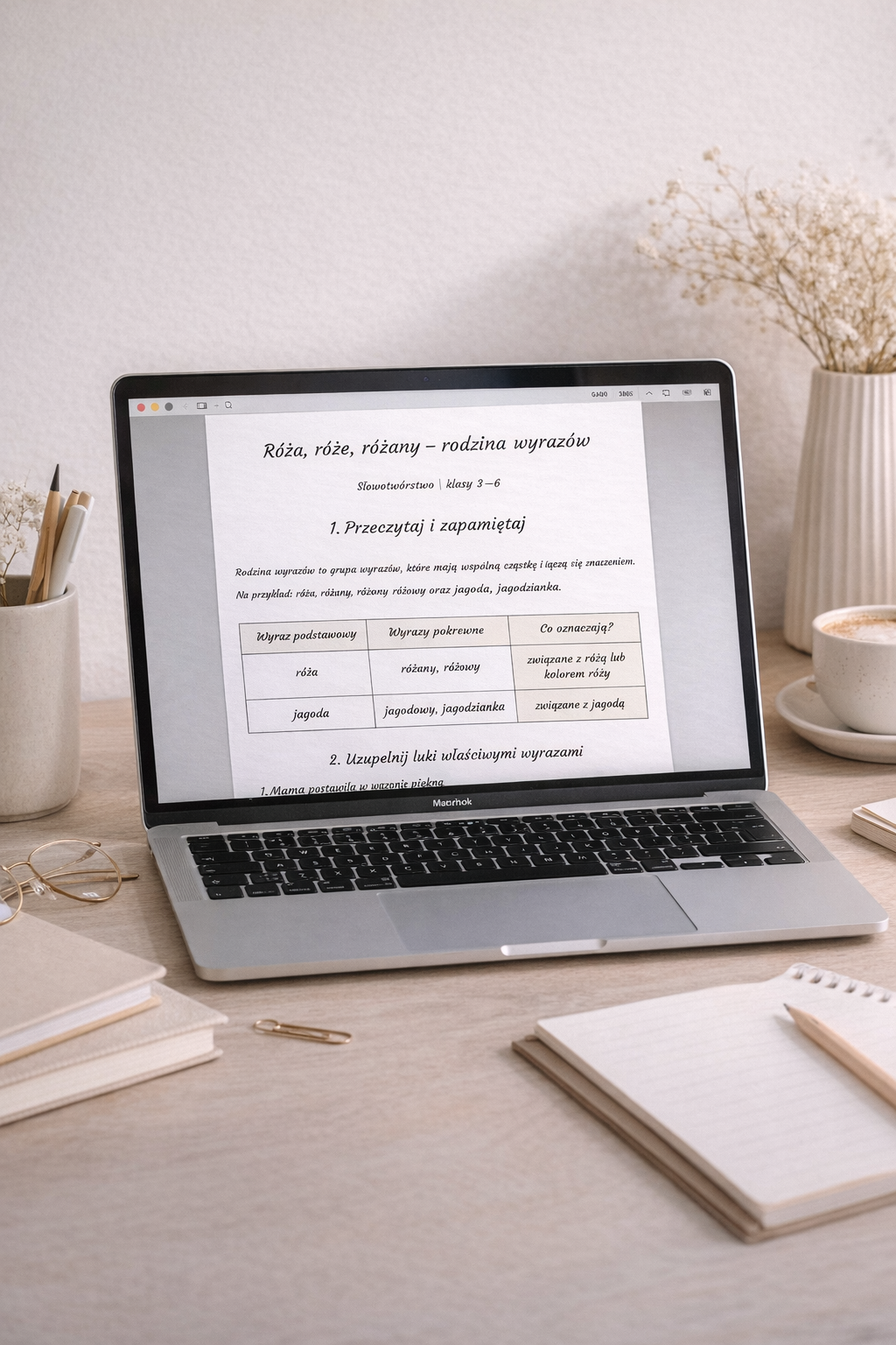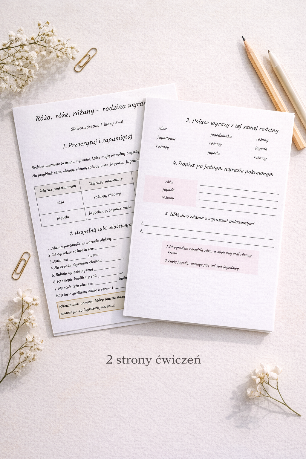 • przykłady (róża, jagoda i ich rodziny wyrazów)