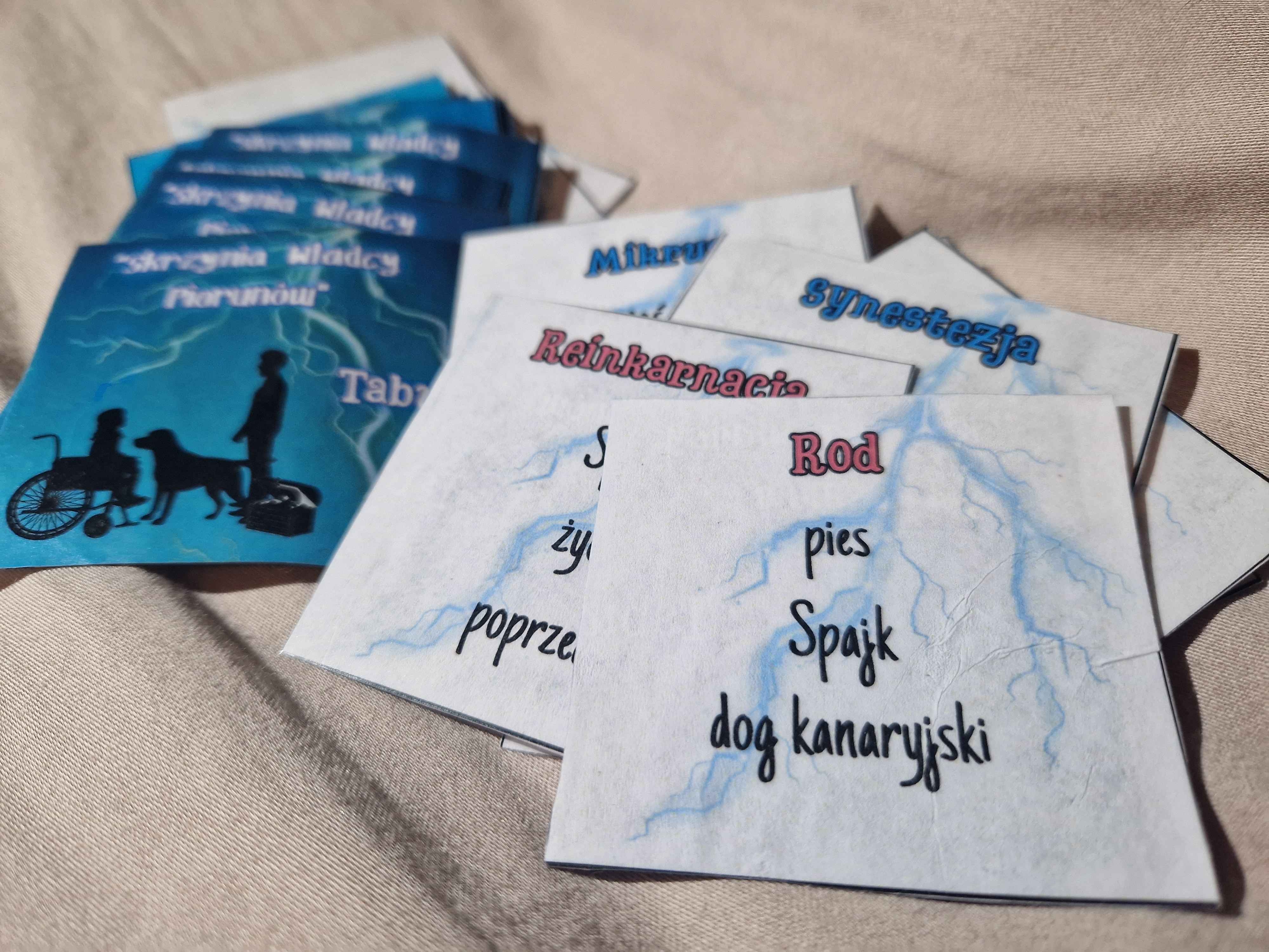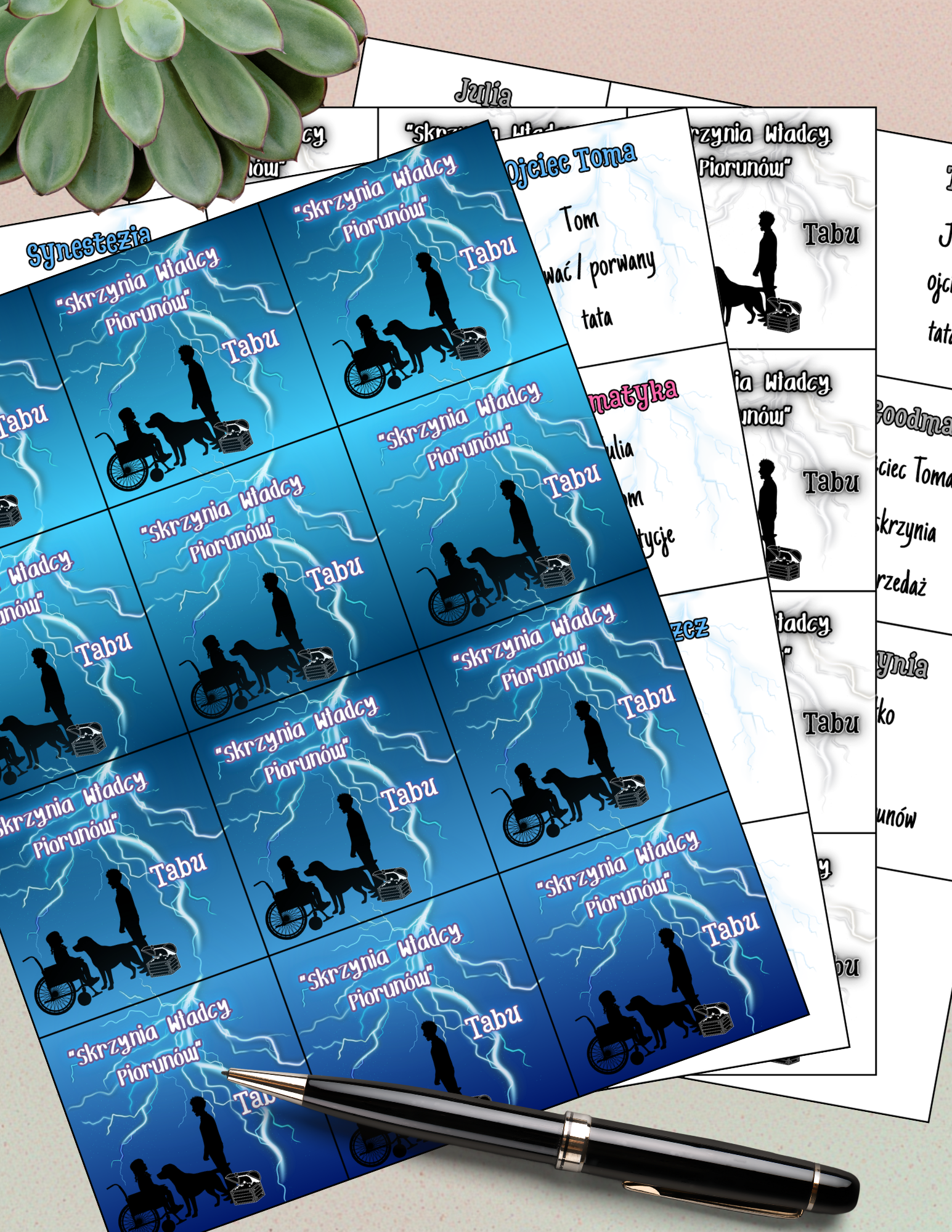 Materiał dydaktyczny w formie gry TABU, przygotowany z myślą o pracy z lekturą uzupełniającą Marcina Kozioła – „Skrzynia Władcy Piorunów”. Idealnie sprawdzi się zarówno podczas omawiania lektury, jak i w ramach powtórzenia materiału w atrakcyjnej, angażującej formie. 📄 Produkt w formie pliku PDF do druku ✂️ 36 kart do wycięcia Produkt zawiera dwie wersje gry do druku: wersję kolorową oraz wersję czarno-białą. Obie wersje mają tło graficzne nawiązujące do lektury. Jeśli chcesz wydrukować karty bez tła i zaoszczędzić tusz, wystarczy w ustawieniach drukowania wybrać opcję „drukuj tylko strony nieparzyste”. 📝 Instrukcja gry (propozycja): Grę można przeprowadzić z podziałem na drużyny lub bez podziału na grupy. Wariant drużynowy: 1. Klasę dzielimy na dwie (lub więcej) grup. 2. Uczeń z jednej drużyny losuje kartę. 3. Przeciwna drużyna zna hasło oraz słowa „tabu” zapisane na karcie. 4. Zadaniem ucznia jest naprowadzenie swojej drużyny na właściwe hasło, nie używając słów „tabu”. 5. Jeśli przeciwna drużyna usłyszy słowo „tabu” – krzyczy „TABU!” i zdobywa punkt. 6. Jeśli drużyna ucznia poprawnie odgadnie hasło – punkt zdobywa zgadująca drużyna. 7. Gra toczy się do ustalonej liczby punktów lub kart. Wariant bez podziału na grupy: 1. Jeden uczeń losuje kartę i naprowadza klasę na hasło. 2. Nauczyciel pilnuje słów „tabu”. 3. Hasło odgadują wszyscy pozostali uczniowie. ⭐ Sprawdzone w praktyce Materiał został wypróbowany przez specjalistów – uczniów klasy 6 😉 Reakcje? Pełne zaangażowanie i zachwyt – gra skutecznie motywuje do pracy z lekturą i zachęca do aktywnego udziału w lekcji.