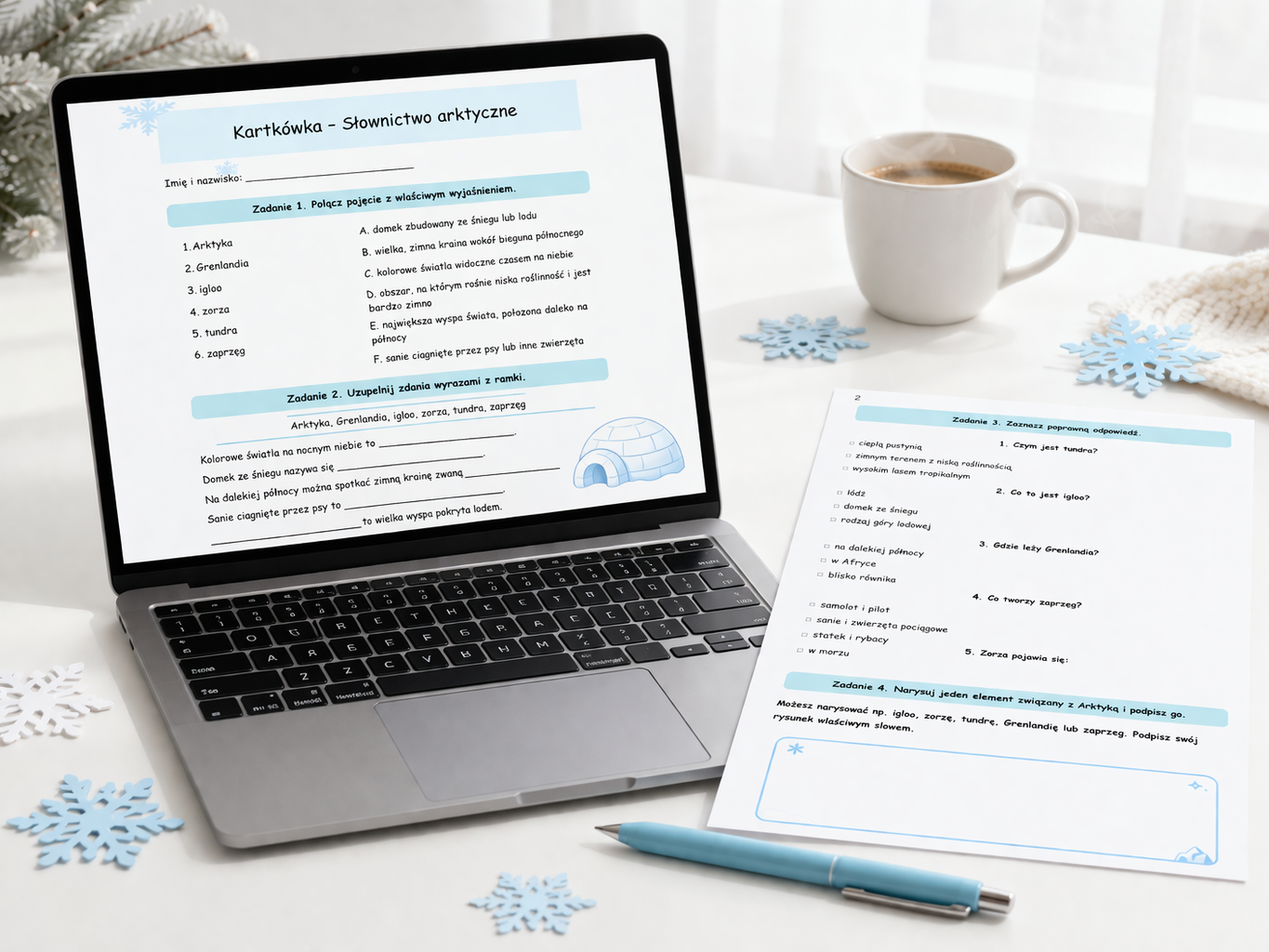 #kartkowka #materialyedukacyjne #pdfdladzieci #nauczyciel #edukacjawczesnoszkolna #arktyka #slownictwo #przyroda #geografia #zima #grenlandia #igloo #tundra #zorza #zaprzeg #pracadydaktyczna #lekcja #pomoceedukacyjne #printable #produktcyfrowy