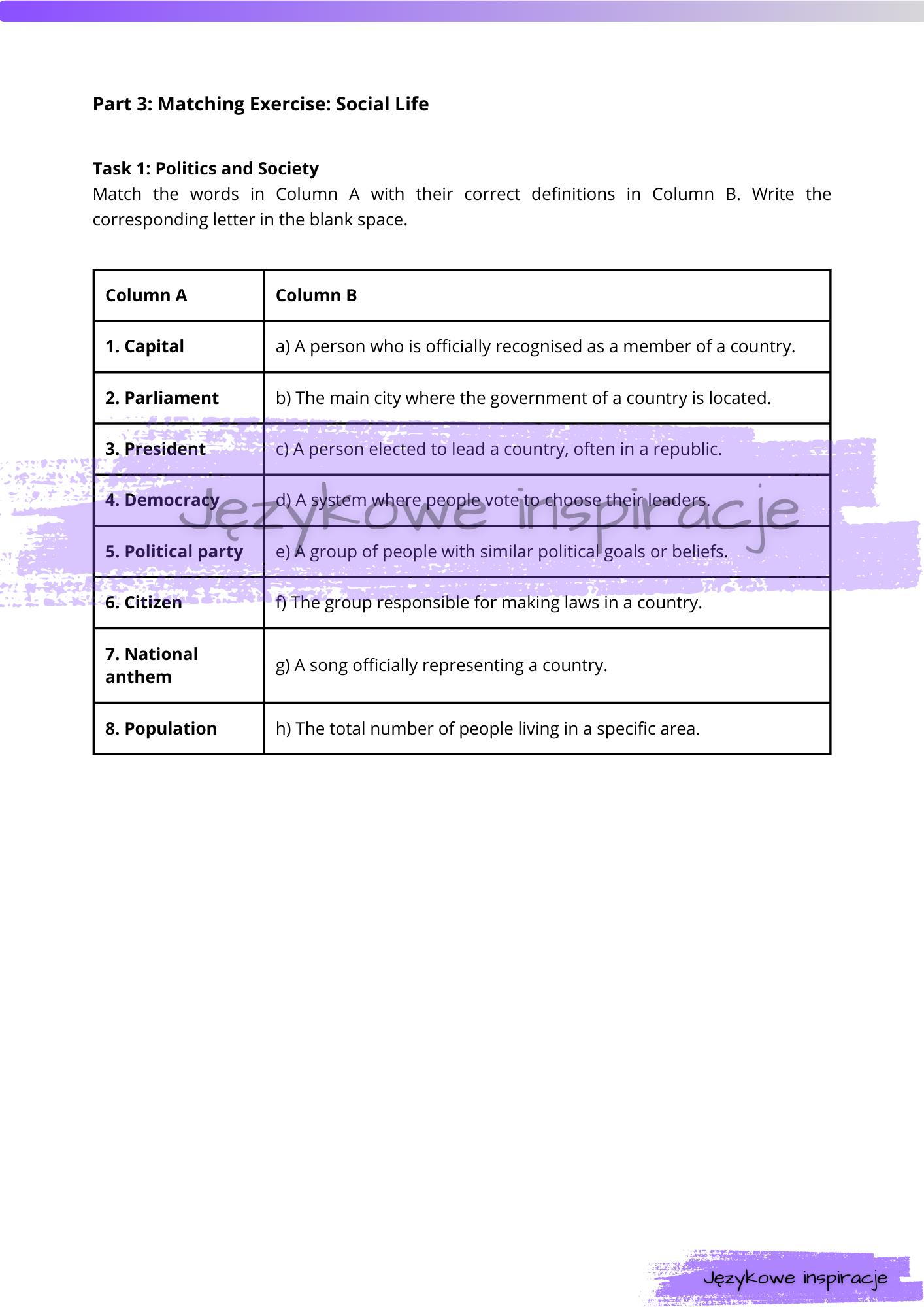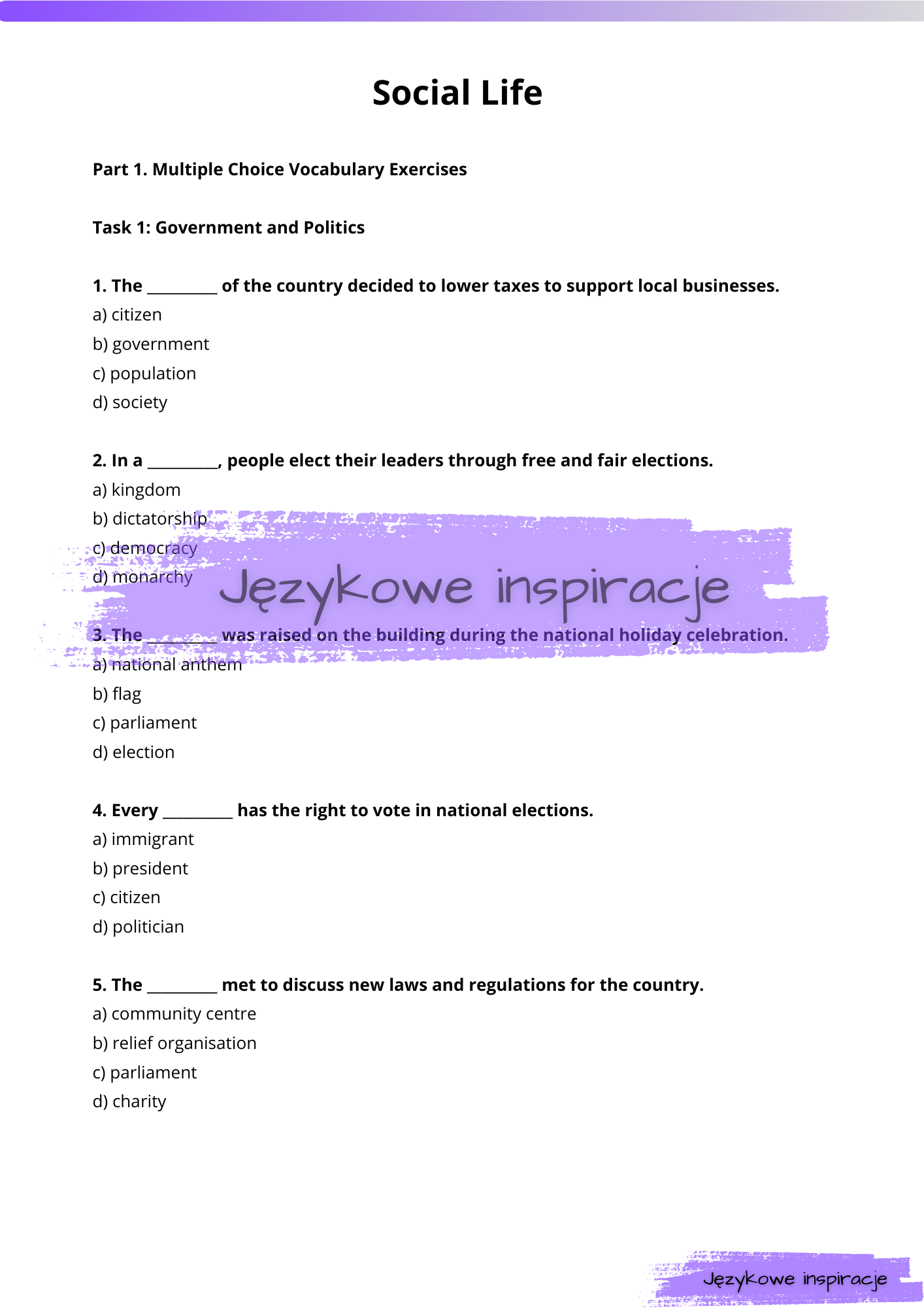 Karty pracy SOCIAL LIFE to zestaw zadań, który świetnie sprawdzi się, jako powtórka rozdziału Social Life przed egzaminem ósmoklasisty.