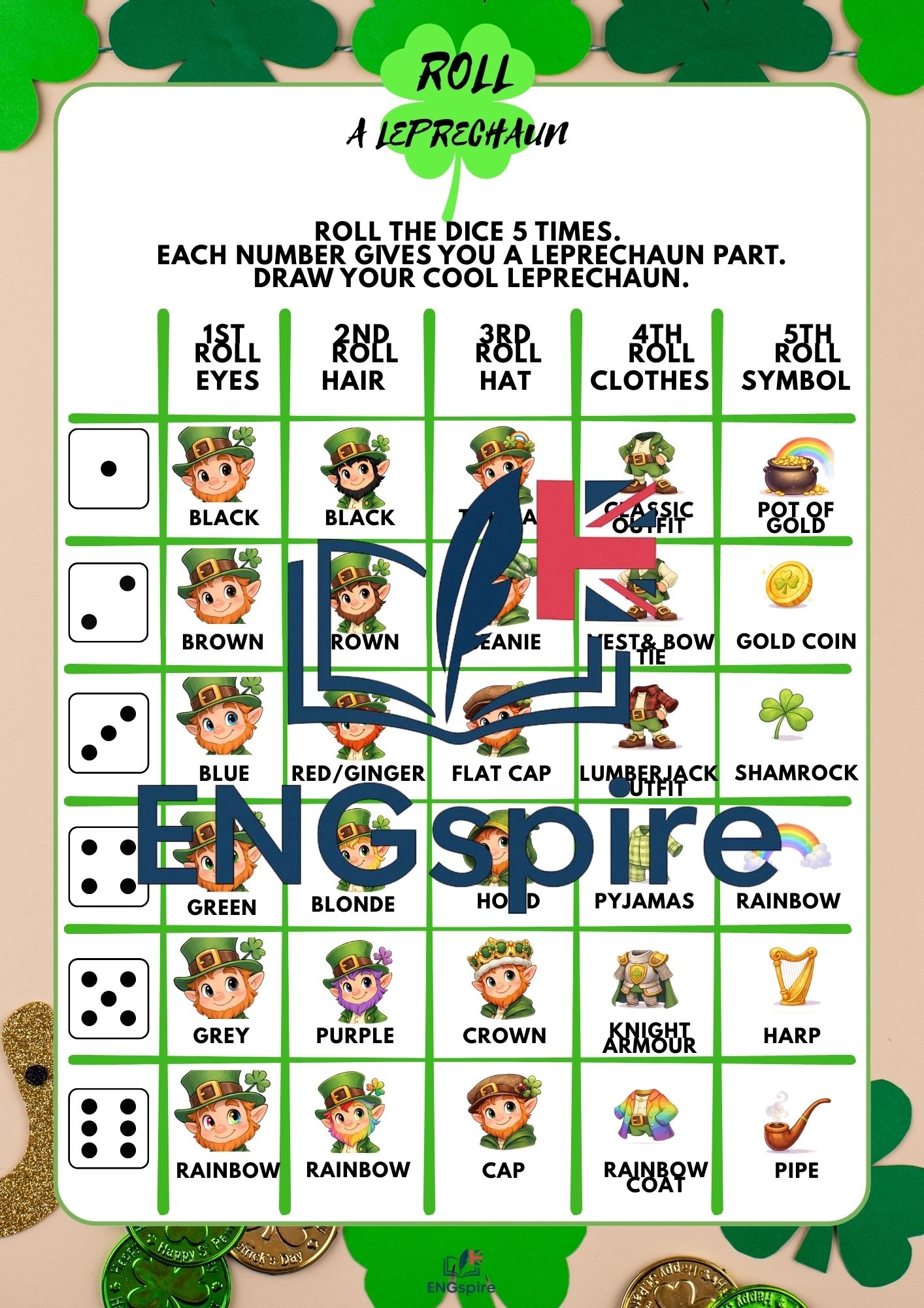 🍀 Roll a Leprechaun – uczniowie rzucają kostką i tworzą własnego skrzata
