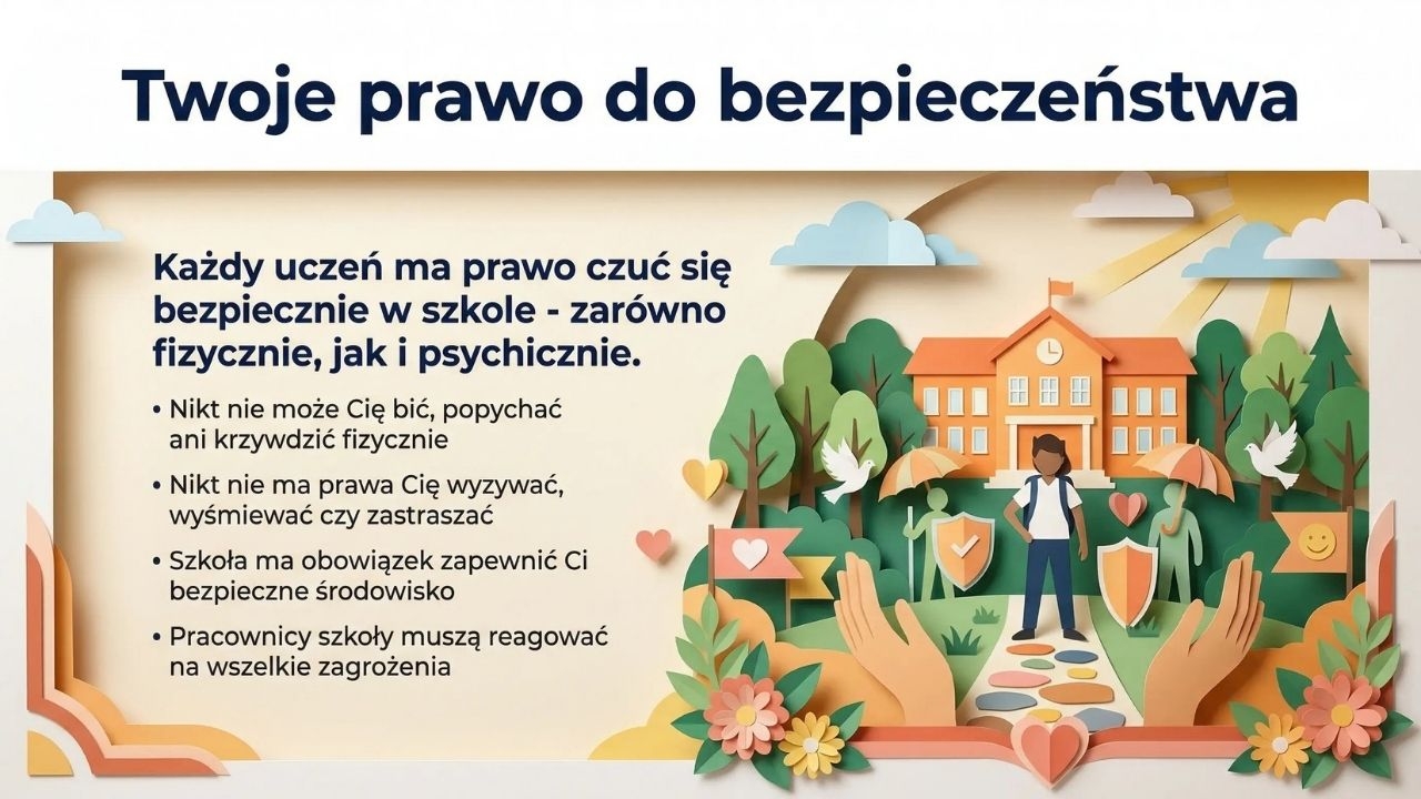 To gotowy materiał w formie estetycznej gazetki/plansz PDF, który w przystępny sposób wyjaśnia uczniom, czym są Standardy Ochrony Małoletnich i jakie mają prawa w szkole. Zestaw zawiera 1 plik PDF i 18 stron/18 plansz. Materiał porządkuje najważniejsze treści: prawo do bezpieczeństwa i szacunku, ochronę danych i wizerunku (m.in. zakaz fotografowania bez zgody), poufność rozmów z psychologiem, a także jasne wyjaśnienie, czym są przemoc i zaniedbanie (w tym przemoc seksualna jako naruszanie granic intymności) oraz jakie sygnały mogą świadczyć o krzywdzeniu dziecka. Ważnym elementem jest także wskazanie, gdzie i do kogo zwrócić się po pomoc – w szkole i poza nią – oraz wzmocnienie komunikatu, że uczeń nie zostaje sam ze swoim problemem.