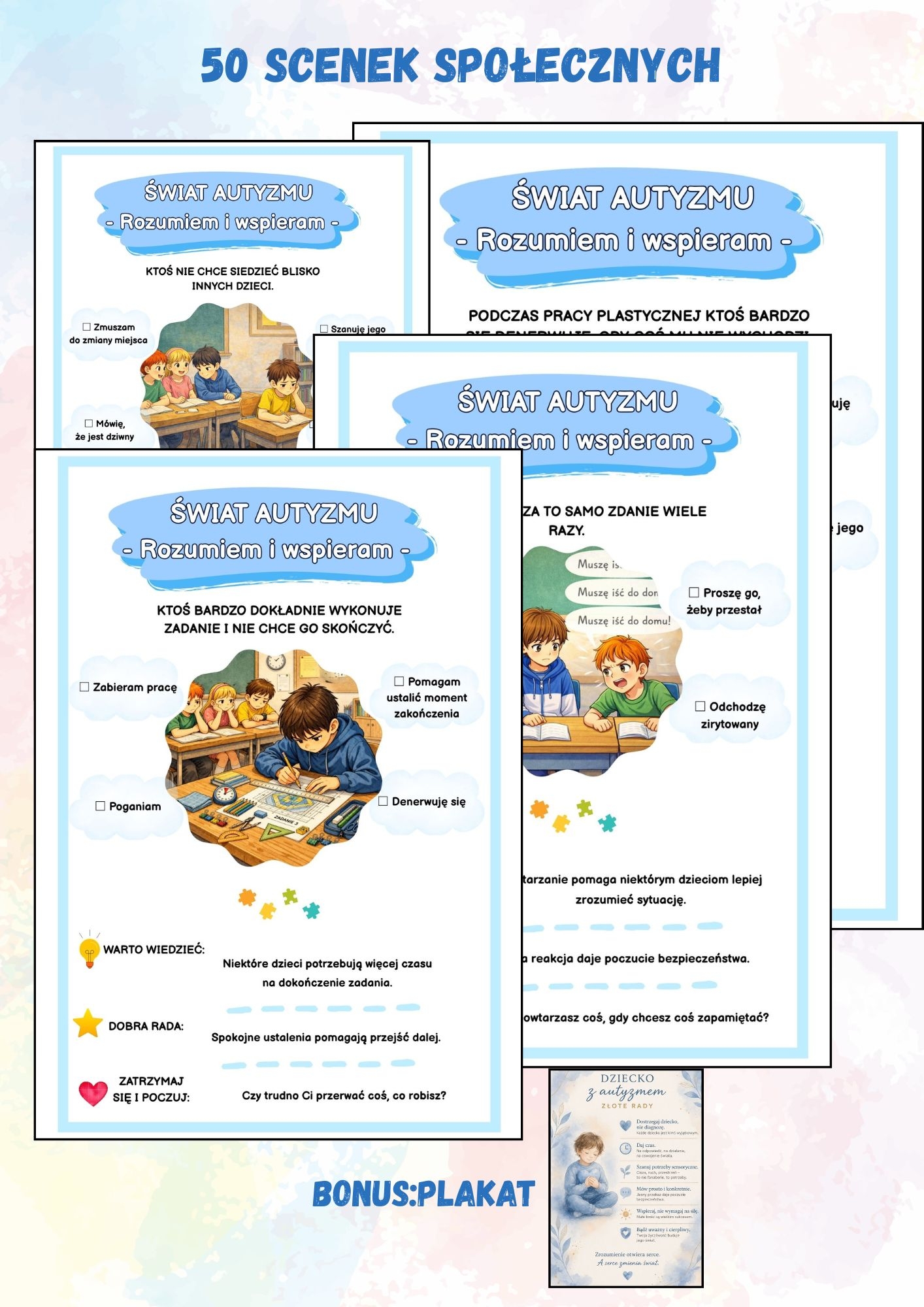 Materiał idealny na Dzień Świadomości Autyzmu, ale sprawdzi się przez cały rok szkolny – na TUS, rewalidacji, godzinach wychowawczych i zajęciach integracyjnych.