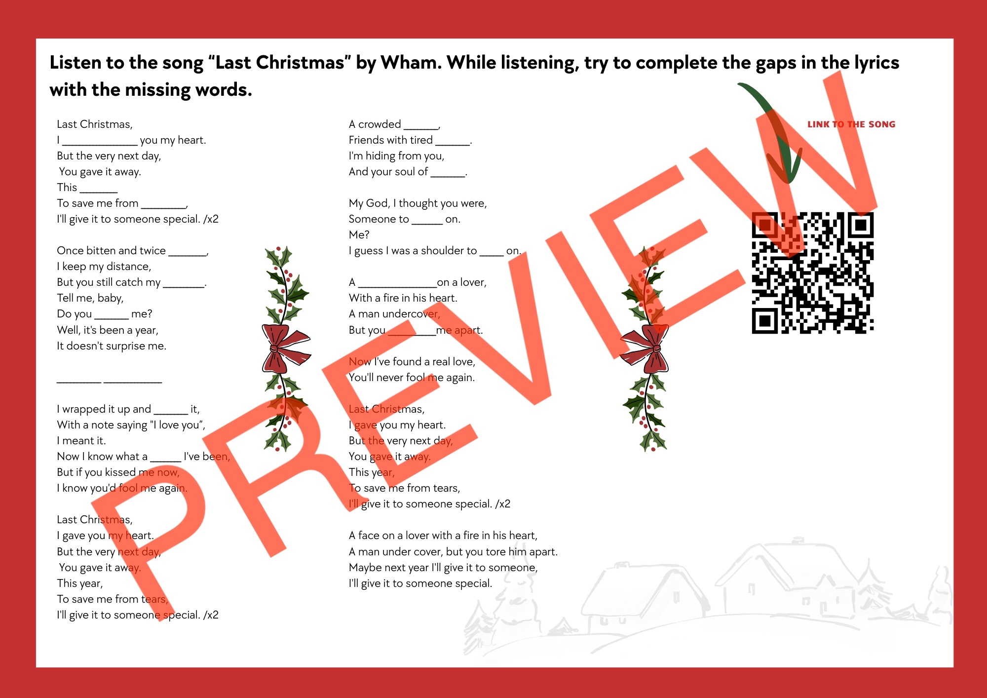 🎧 Ćwiczenie typu gap-filling do utworu „Last Christmas” zespołu Wham!
