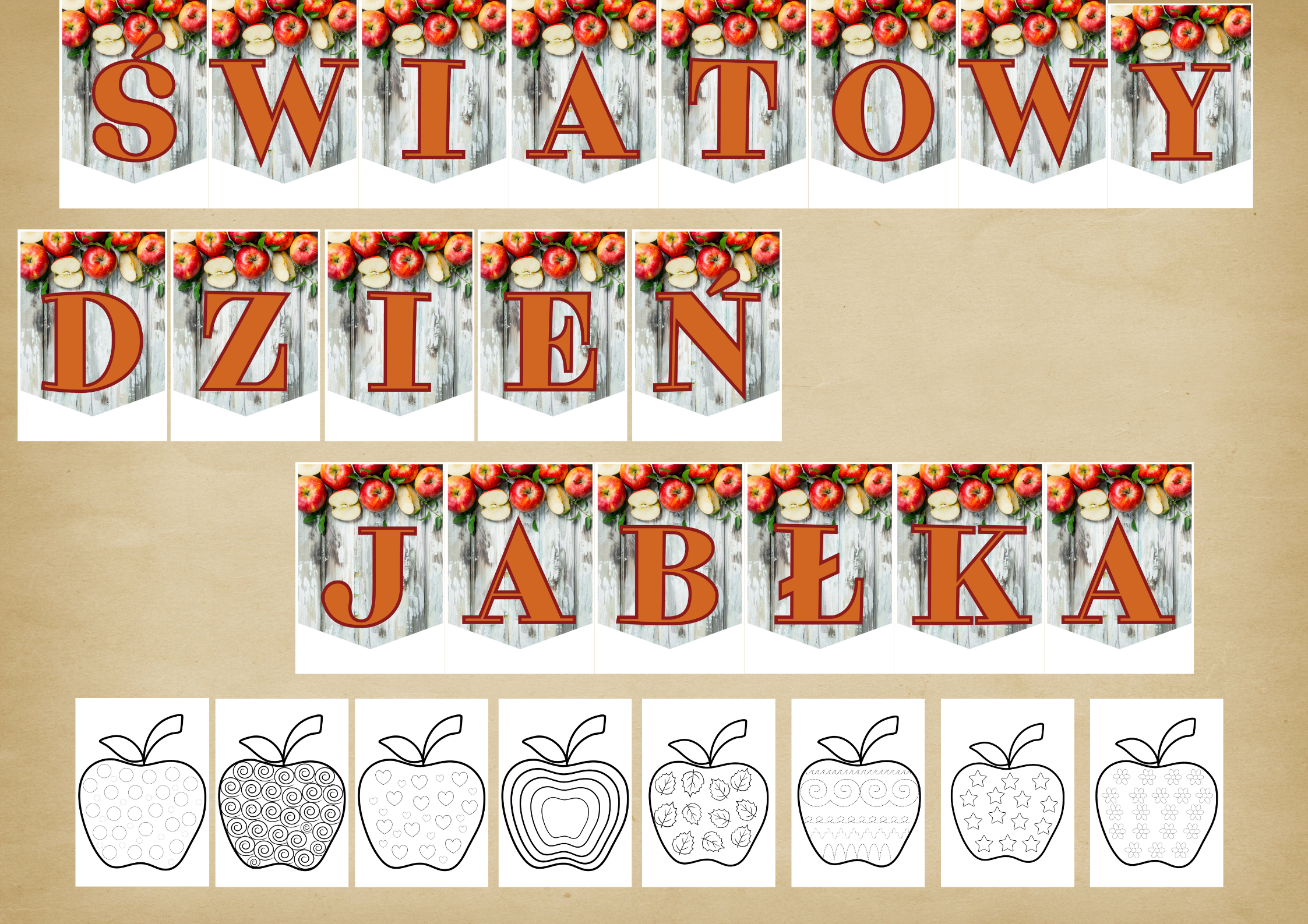 Materiał zawiera gotową girlandę (w dwóch rozmiarach) i 8 kolorowanek z jabłkiem dla przedszkolaków. Kolorowankę można wykorzystać na kilka sposobów: do malowania kredkami, farbami, wyklejania plasteliną lub wydzieranką. Kolorowe jabłka będą pięknie zdobić galerię prac pod gotową girlandą. Cały plik zapisany w formacie pdf.