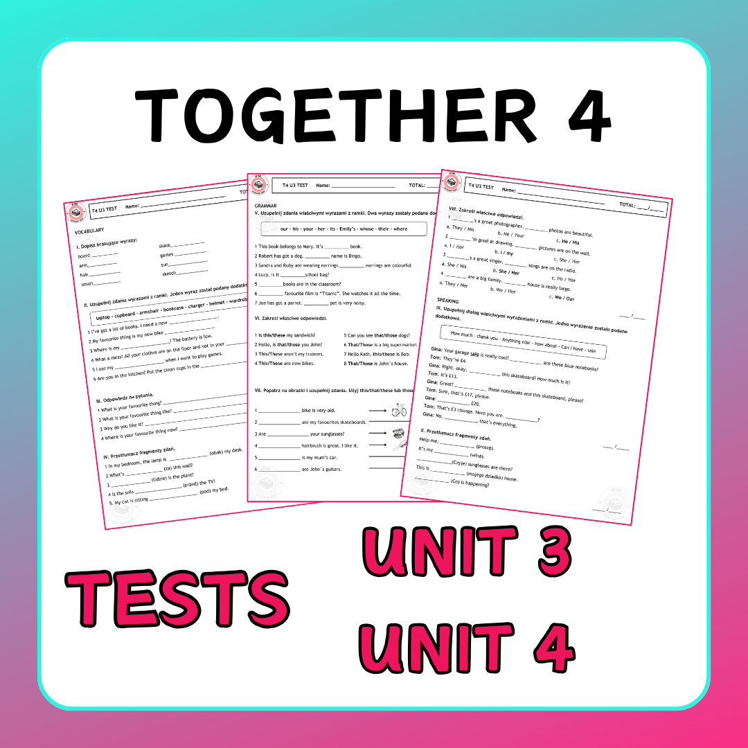 📚 Polecam testy sprawdzające wiedzę z działów 3 i 4 podręcznika Together 4.