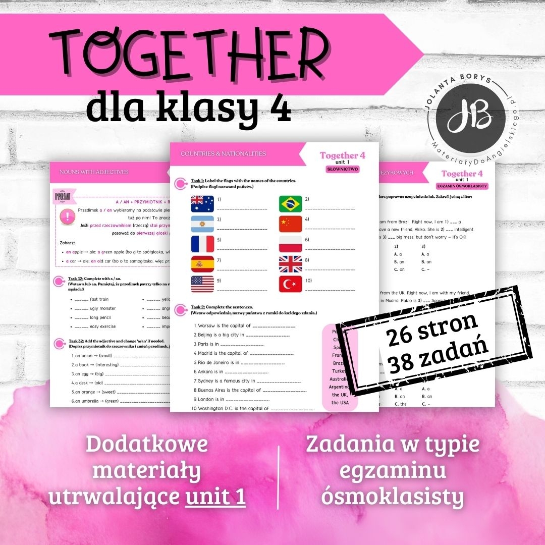 📖 Zestaw ćwiczeń do działu 1 podręcznika Together 4 to doskonałe uzupełnienie lekcji – idealne do pracy na lekcjach w szkole, zajęciach dodatkowych, korepetycjach, samodzielnej nauki lub jako dodatkowe zadania dla chętnych.