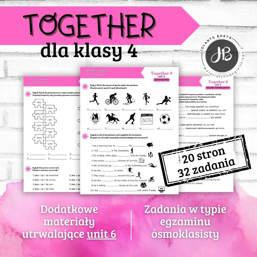 📖 Zestaw ćwiczeń do działu 6 podręcznika Together 4 to doskonałe uzupełnienie lekcji – idealne do pracy na lekcjach w szkole, zajęciach dodatkowych, korepetycjach, samodzielnej nauki lub jako dodatkowe zadania dla chętnych.
