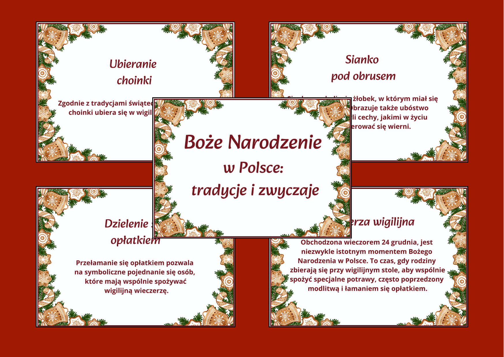 Materiał w formie gazetki pt. „Boże Narodzenie w Polsce: Tradycje i zwyczaje”, składa się z 11 stron pdf w formacie A4.