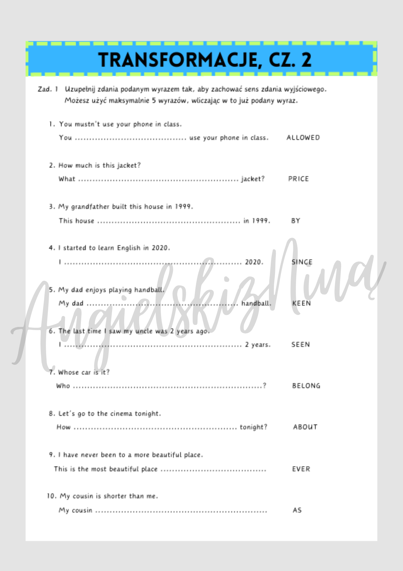 Przećwicz ze swoimi uczniami najczęstsze wyrażenia pojawiające się w zadaniu z tranformacjami na egzaminie ósmoklasisty / maturze z języka angielskiego na poziomie podstawowym!