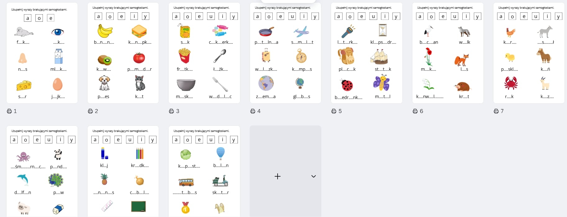 Uzupełnij wyrazy brakującymi literami - samogłoskami