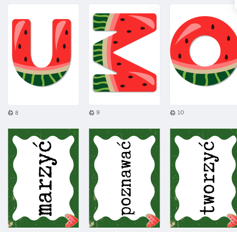 Gazetka „W tym roku możesz” będzie ciekawym akcentem na szkolnym korytarzu, który na pewno przyciągnie uwagę uczniów oraz pracowników szkoły. Zestaw składa się z 24 plansz – 14 liter oraz 12 kart z tekstem. Tym razem motywem przewodnim są arbuzy 😉