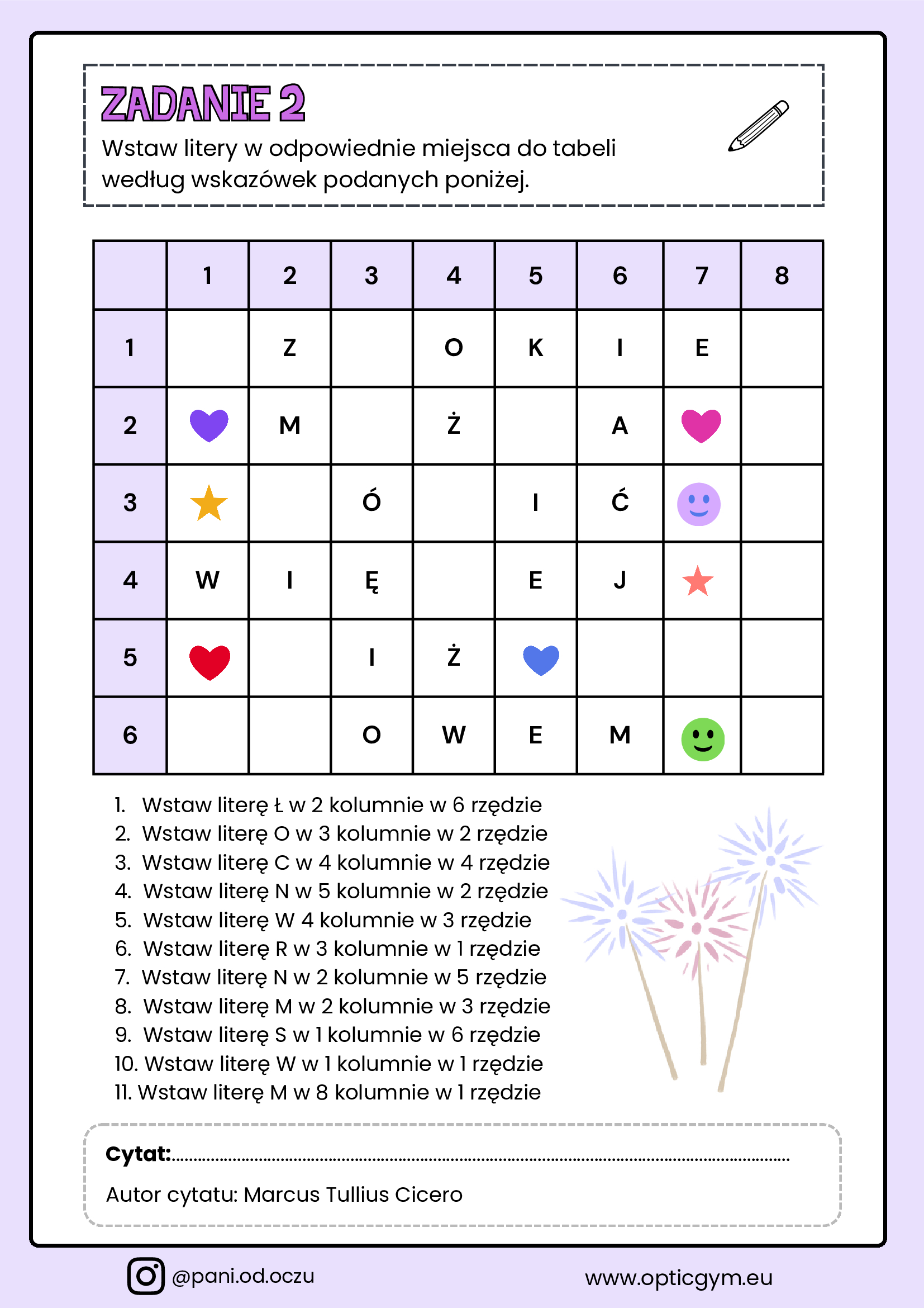Umiejętność poprawnego odbierania i przetwarzania bodźców wzrokowych ma ogromne znaczenie w codziennym funkcjonowaniu dziecka. Regularne ćwiczenia w tym zakresie mogą pomóc zapobiegać trudnościom edukacyjnym oraz wspierać rozwój dziecka.