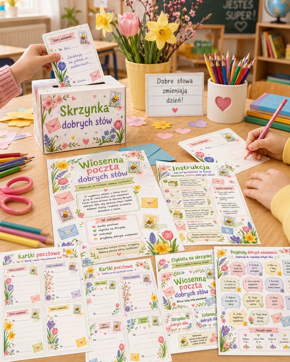 #WiosennaPocztaDobrychSłów #DobreSłowa #ŻyczliwośćWklasie #MateriałyDlaNauczycieli #EdukacjaWczesnoszkolna #GodzinaWychowawcza #ZajęciaWychowawcze #IntegracjaKlasy #Empatia #Uważność #RelacjeWKlasie #PozytywnaKlasa #WiosenneMateriały #KartyPracy #DoDruku #SzkołaPodstawowa #Nauczycielka #KlasaPełnaŻyczliwości #ŚwietlicaSzkolna #PomysłyDlaNauczycieli
