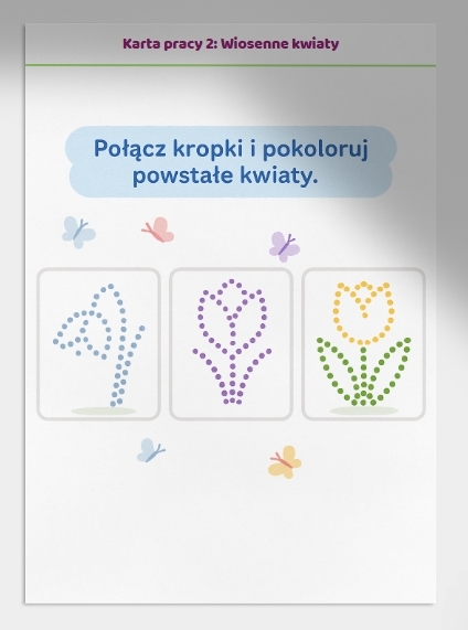 • zabawy z kwiatami (łączenie kropek i kolorowanie)