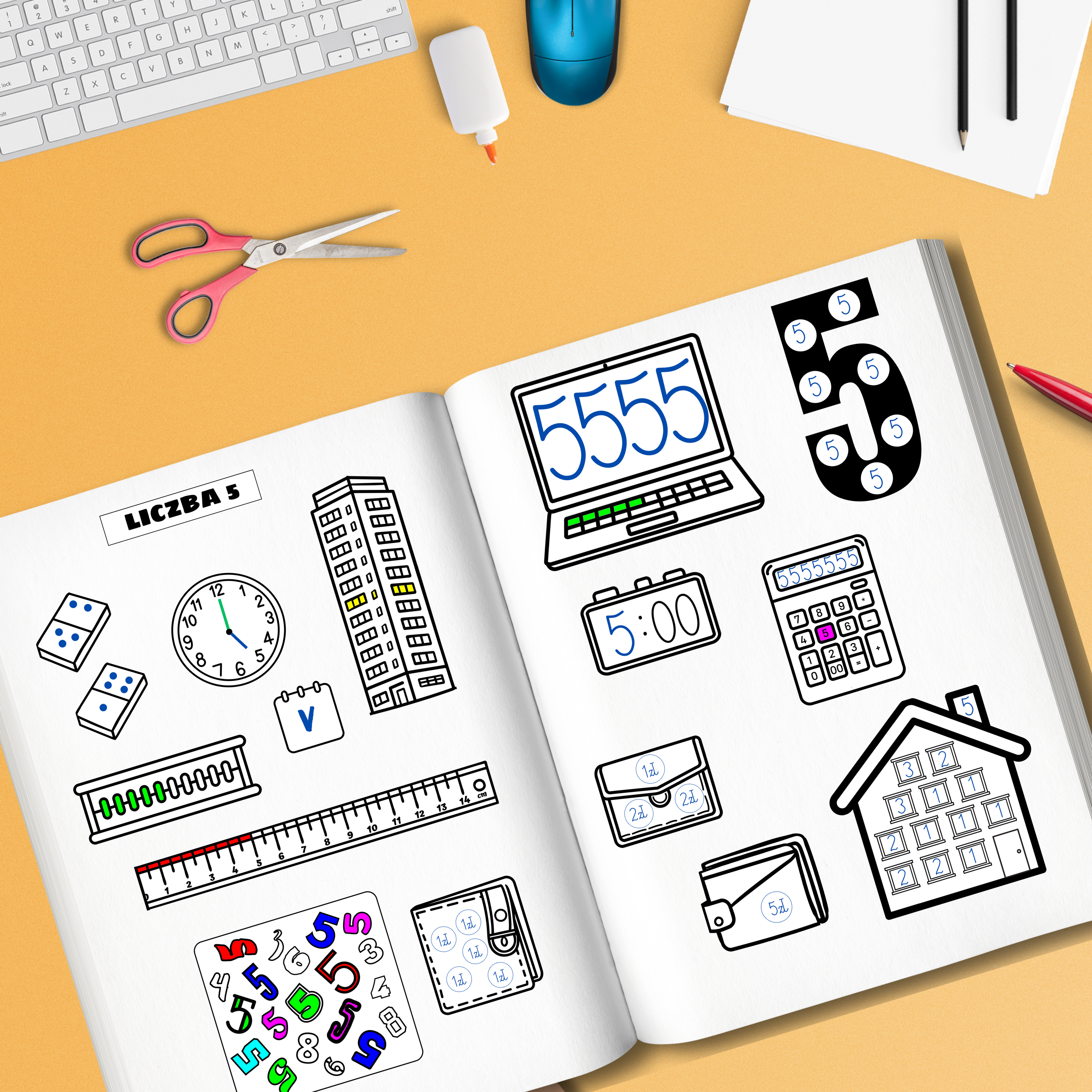 Zestaw zawiera kompleksowe karty pracy dla każdej liczby z zakresu 0-10. Każda karta została zaprojektowana tak, aby angażować dziecko na wielu płaszczyznach poprzez różnorodne aktywności: