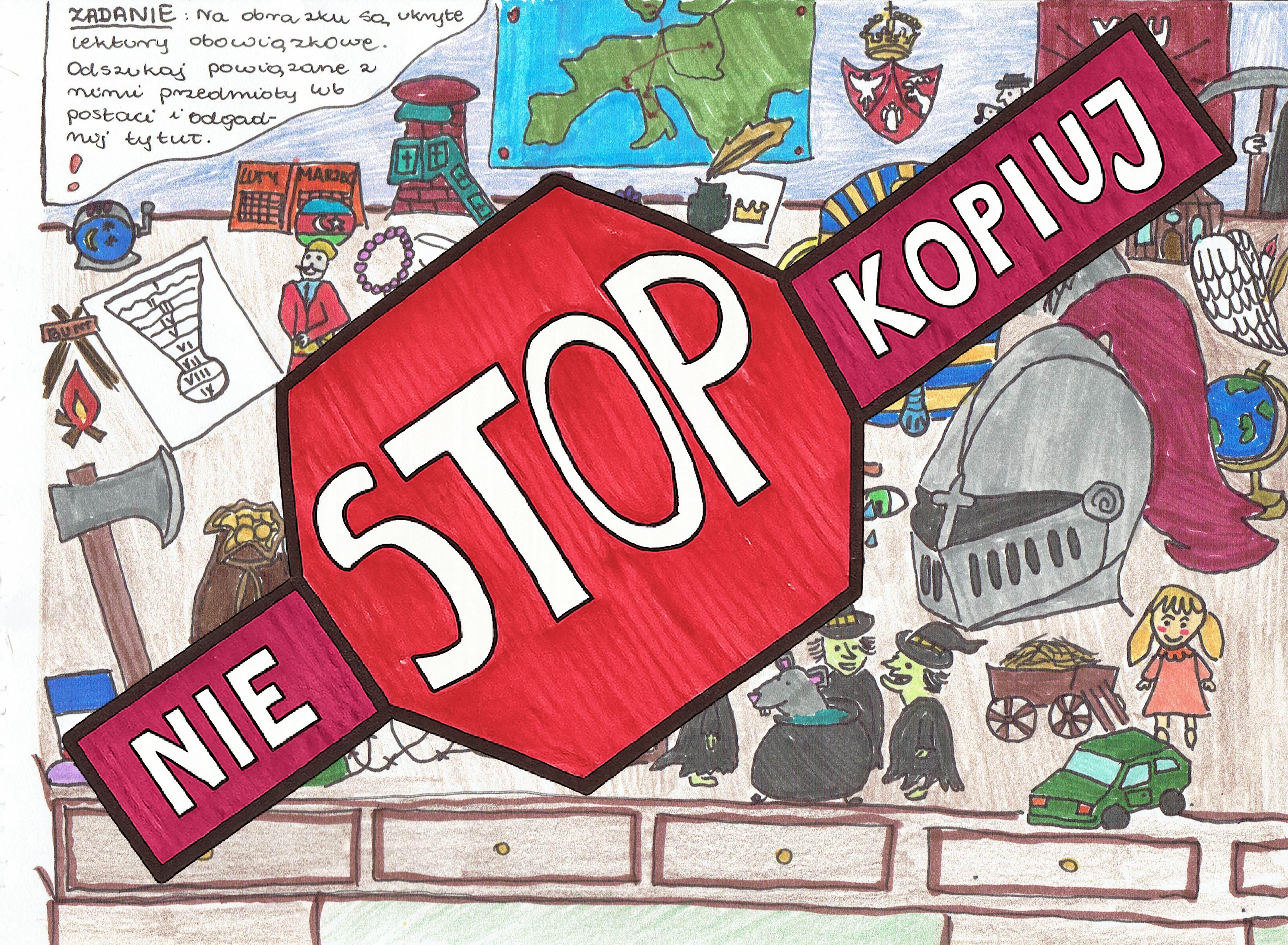 Wysoka interaktywność: Zadaniem ucznia jest odnalezienie przedmiotów i postaci, a następnie powiązanie ich z konkretnymi tytułami (od "Kordiana" po "Rok 1984").