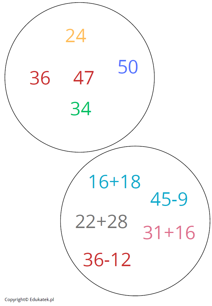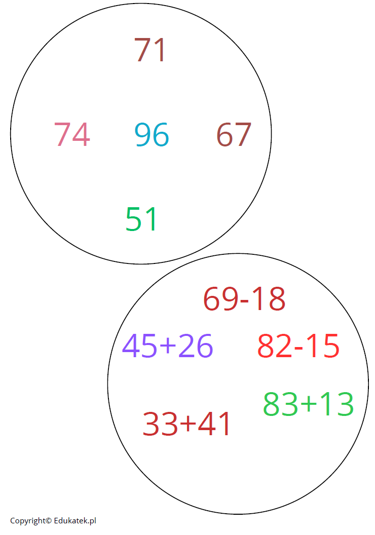 Dzięki tej zabawie dzieci doskonalą dodawanie i odejmowanie oraz spostrzegawczość. W skład zestawu wchodzi 90 kartoników, czyli 45 stron do samodzielnego wydrukowania. Nauczyciel, rodzic decyduje o ilości kart w grze oraz o trudności zadania (działania w zakresie 30, 50, 100).