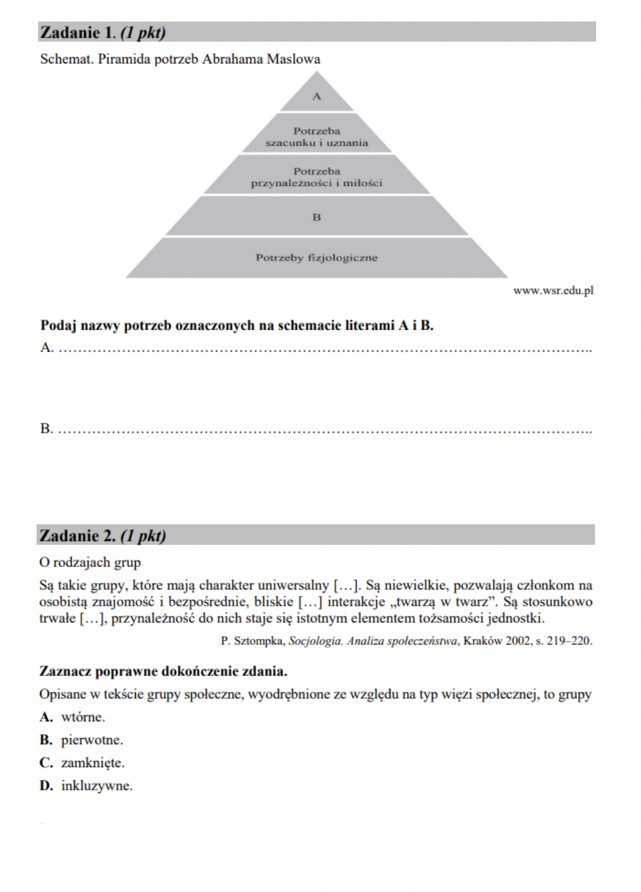 Zadania maturalne z WOSU – Człowiek i społeczeństwo