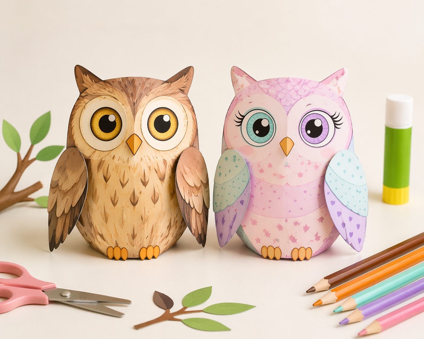 🦉✨ Zbuduj papierową sowę 3D – kreatywna zabawa krok po kroku! ✂️🎨
