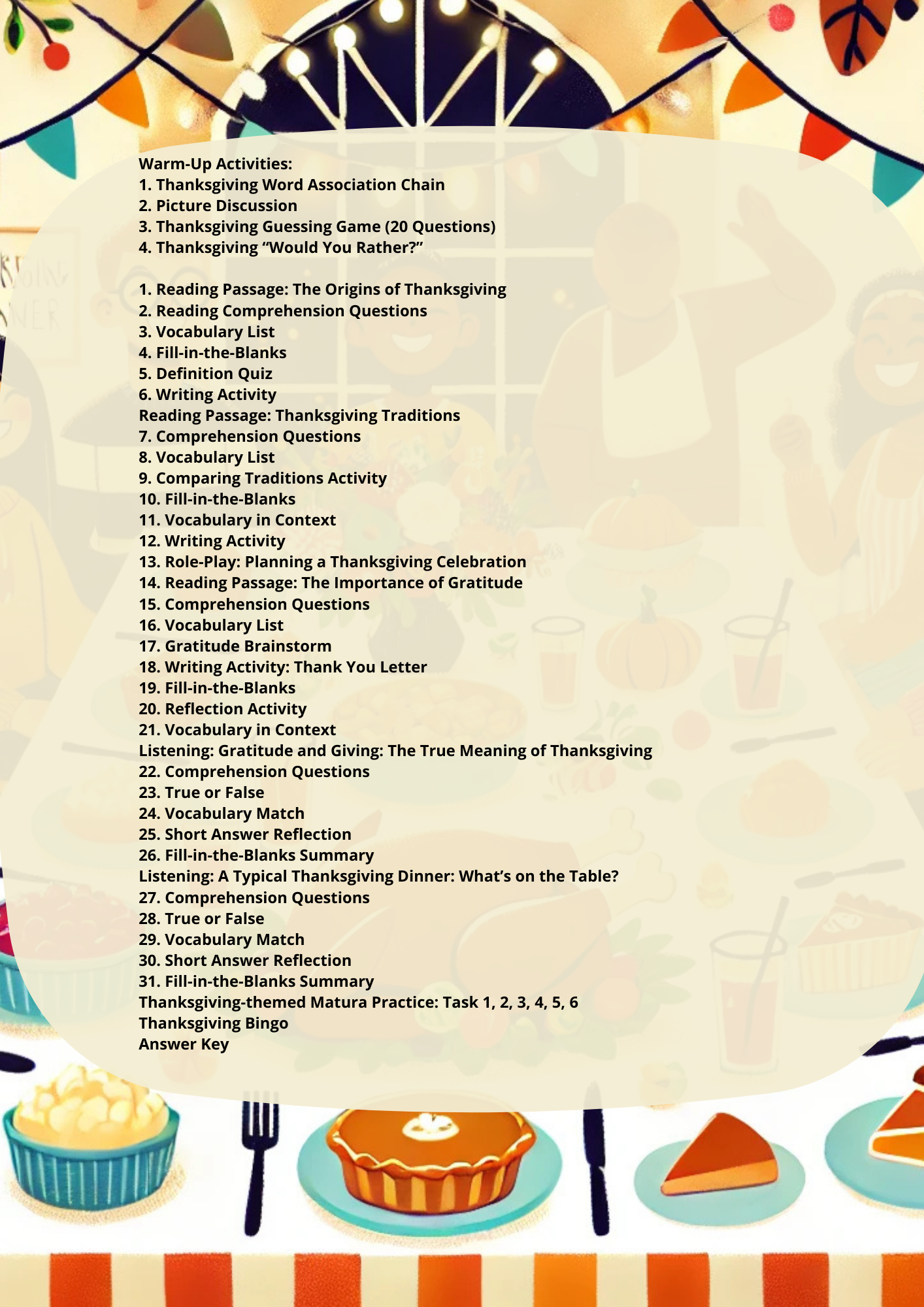 Zestaw kart pracy Thanksgiving Day to zestawy, które mogą Wam posłużyć jako gotowe lekcje lub dodatki do zajęć.