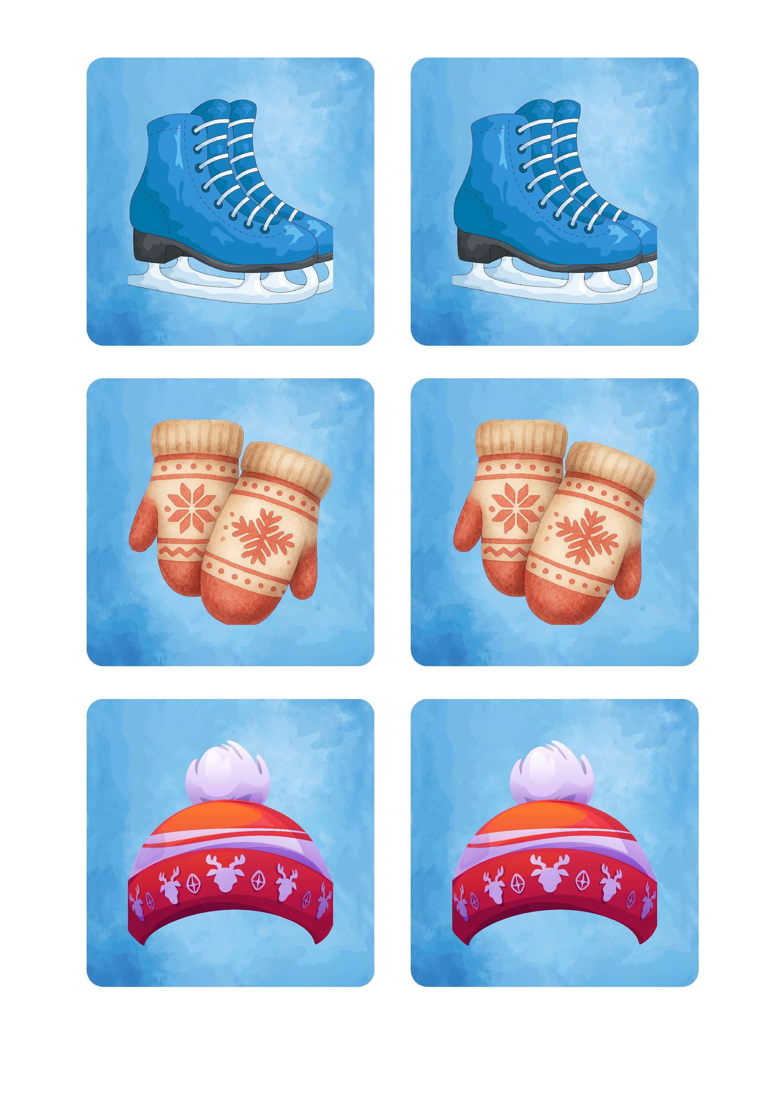 Zimowe menory znajdź dwie takie same karty lub znajdź kolegę z taką samą kartą.
