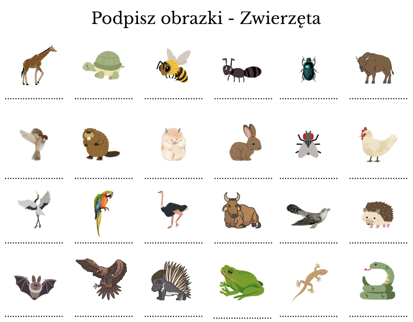 Rozpoznawać i nazywać zwierzęta z trudnościami ortograficznymi.