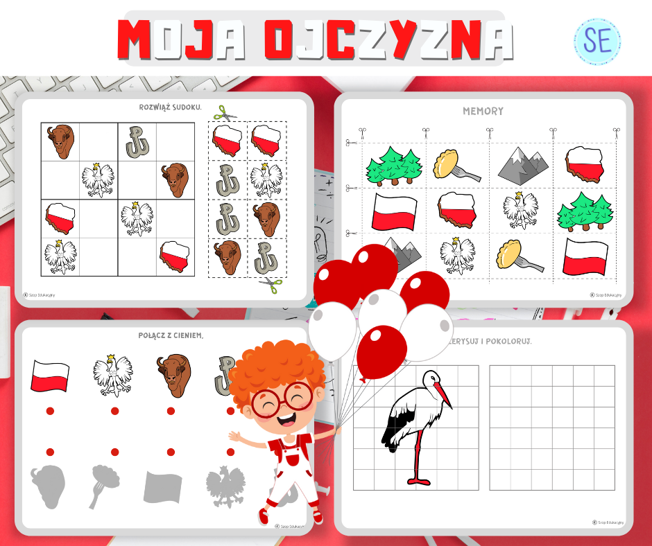 W zestawie 11 listopada: Popraw po śladzie Obliczenia matematyczne Kategoryzacje Pokoloruj Puzzle Wstaw odpowiedni znak Co będzie następne? Połącz z cieniem Szlaczki Labirynty Sudoku Ile jest? Memory