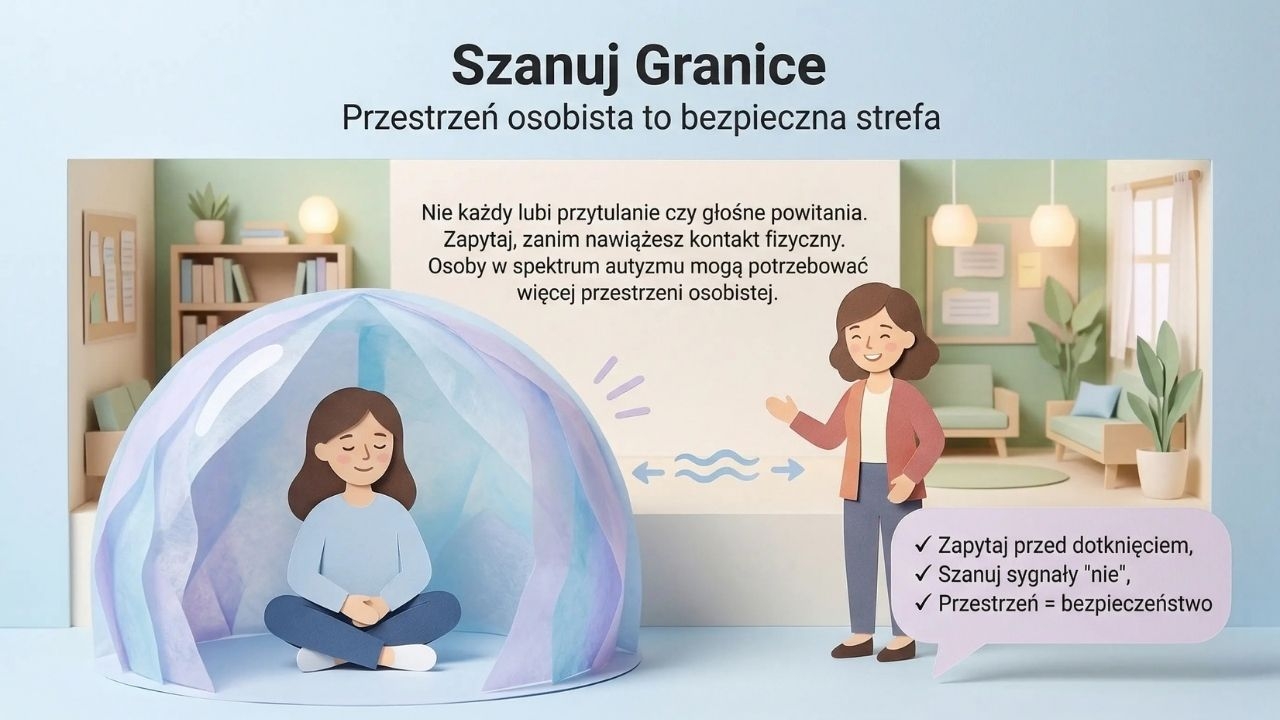 Jak pracować z materiałem? Możesz wydrukować plansze w A4/A3 i ułożyć gazetkę według układu: „dlaczego 2 kwietnia → czym jest spektrum → doświadczenia (sensoryka/rutyna) → mity i fakty → jak wspierać → sojusznictwo”. W wersji prezentacji najlepiej podzielić materiał na 2 krótkie spotkania: pierwsze o rozumieniu spektrum i obalaniu mitów (str. 2–12), drugie o konkretnych zachowaniach wspierających i budowaniu włączającej klasy (str. 13–20). Bardzo dobrze działa też mini-akcja szkolna: „gest sojusznika” (np. jedno zdanie życzliwości lub zaproszenie kogoś do wspólnej aktywności) i dopisanie go na karteczkach obok planszy „Zostań sojusznikiem”.