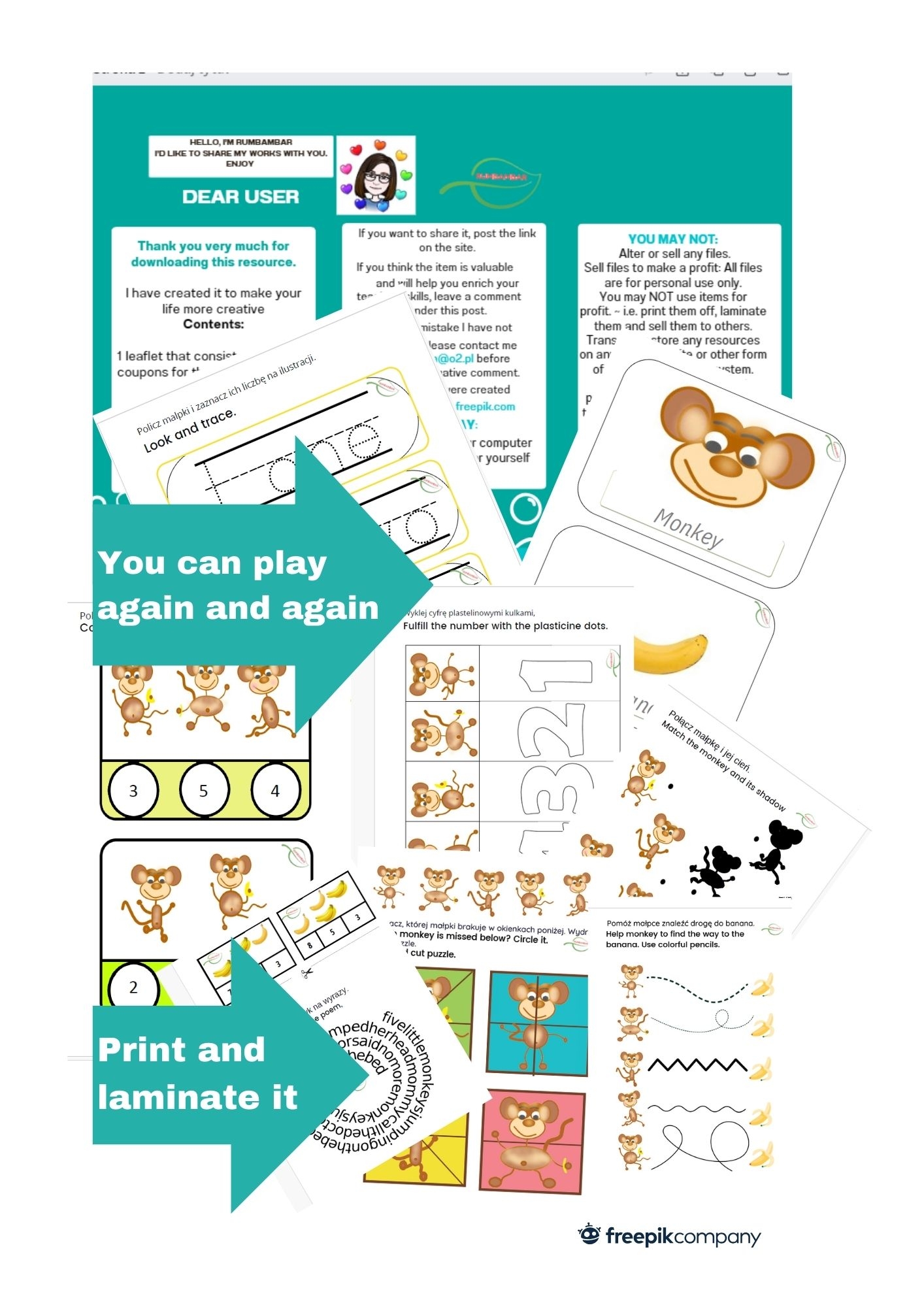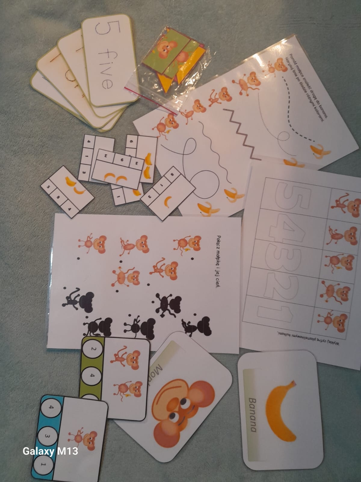 They are concerned to the nursery rhyme : ‘Five little monkeys‘.