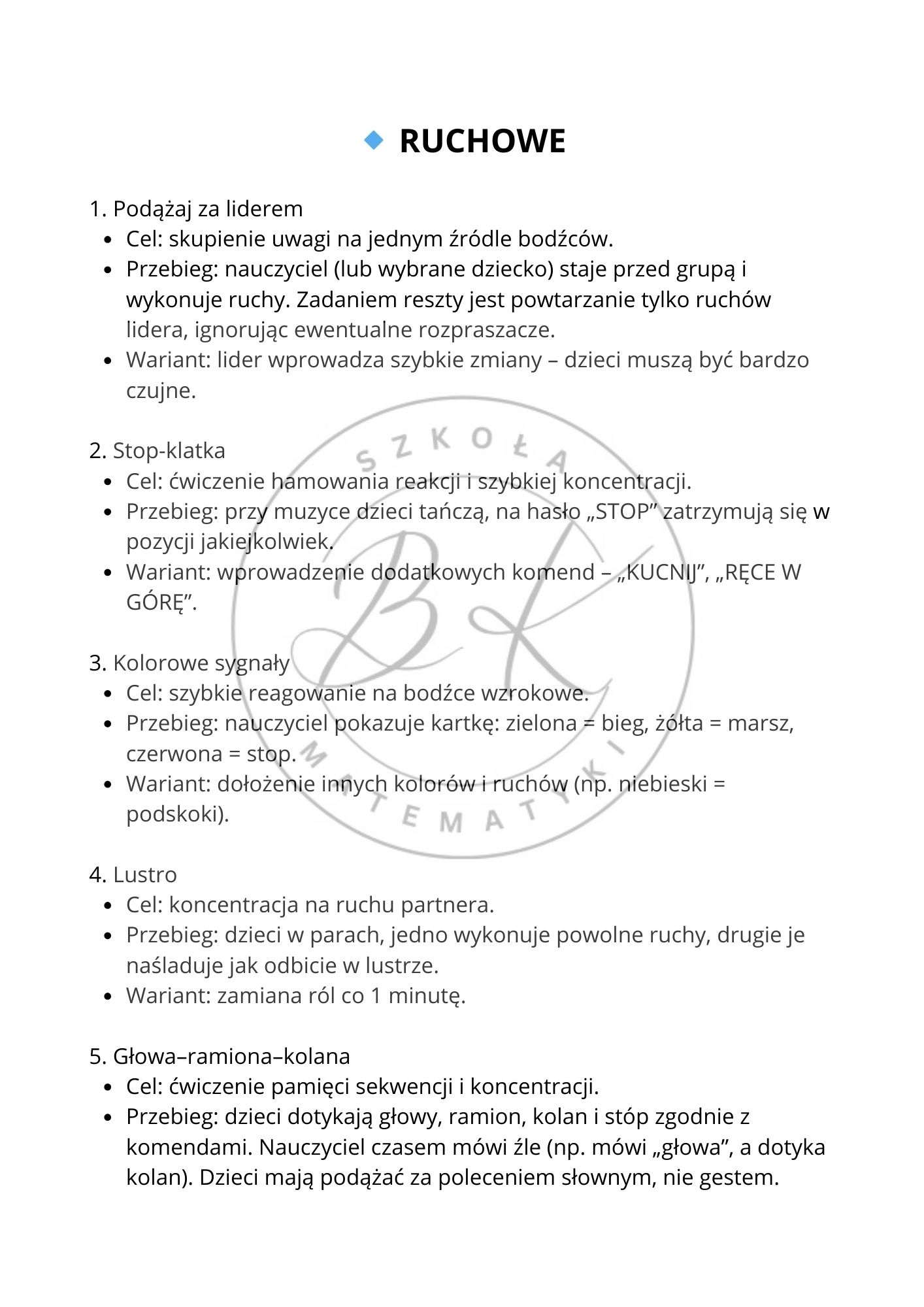 Takie ustrukturyzowanie pozwala dobrać aktywność odpowiednią do potrzeb danej chwili: pobudzić klasę do działania, wyciszyć grupę po przerwie lub skoncentrować uwagę przed ważnym zadaniem.