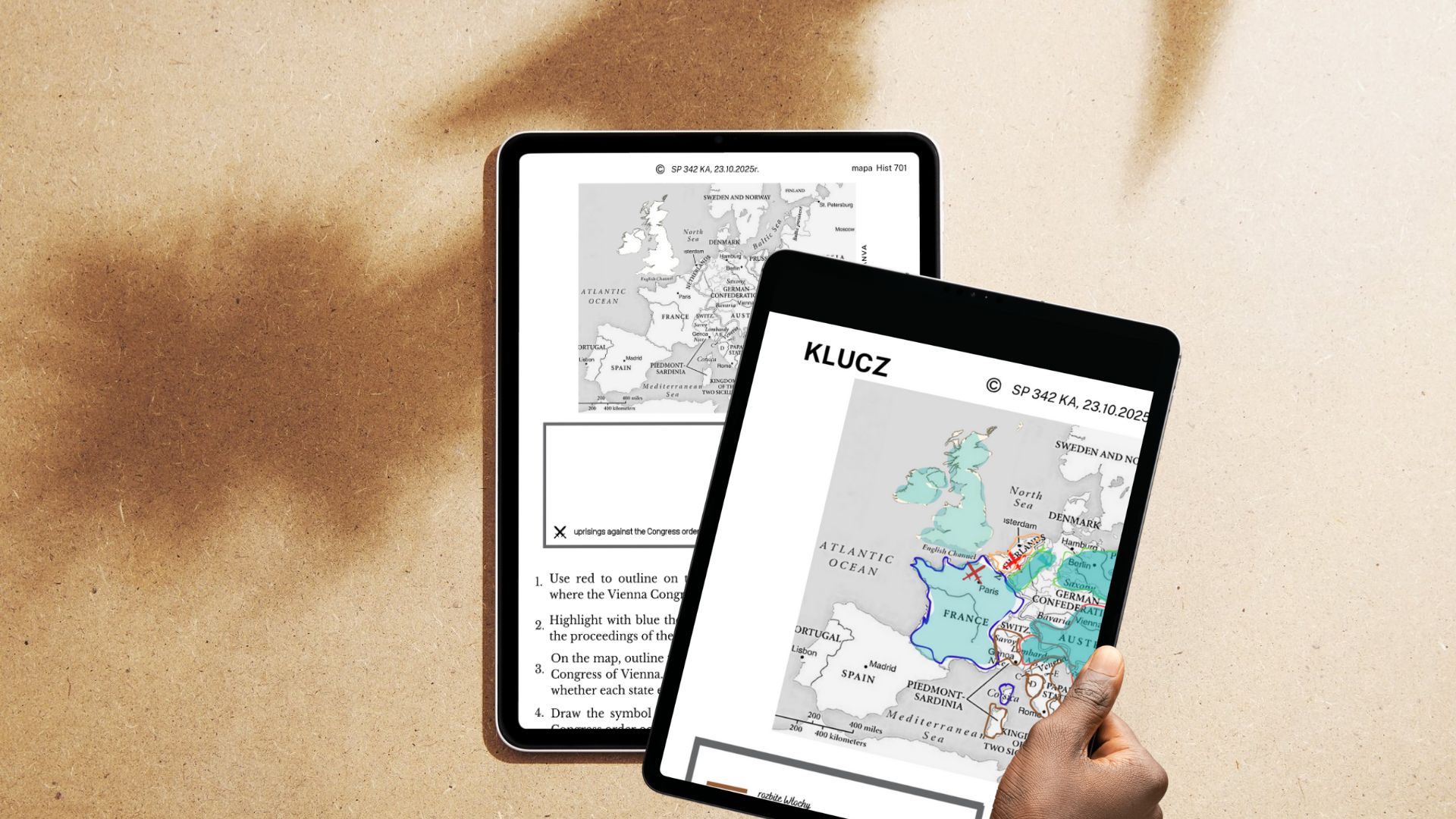 Uczniowie zapoznają się z mapą sprzed Ery napoleońskiej, uzupełniają swoją mapkę przedstawiającą mapę polityczną po kongresie wiedeńskim.