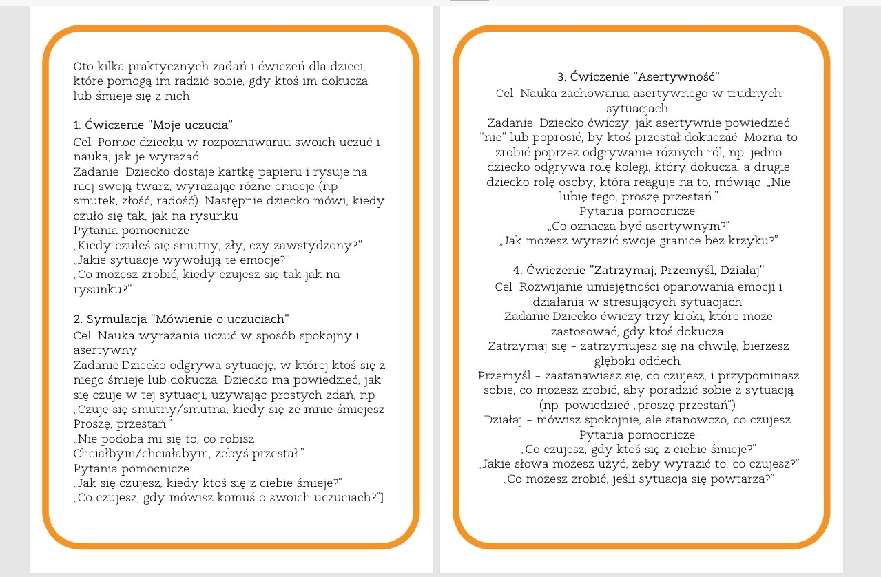 Opowiadanie 2: “Magiczne tarcze przeciw dokuczaniu” (Kiedy ktoś mi dokucza, śmieje się ze mnie)