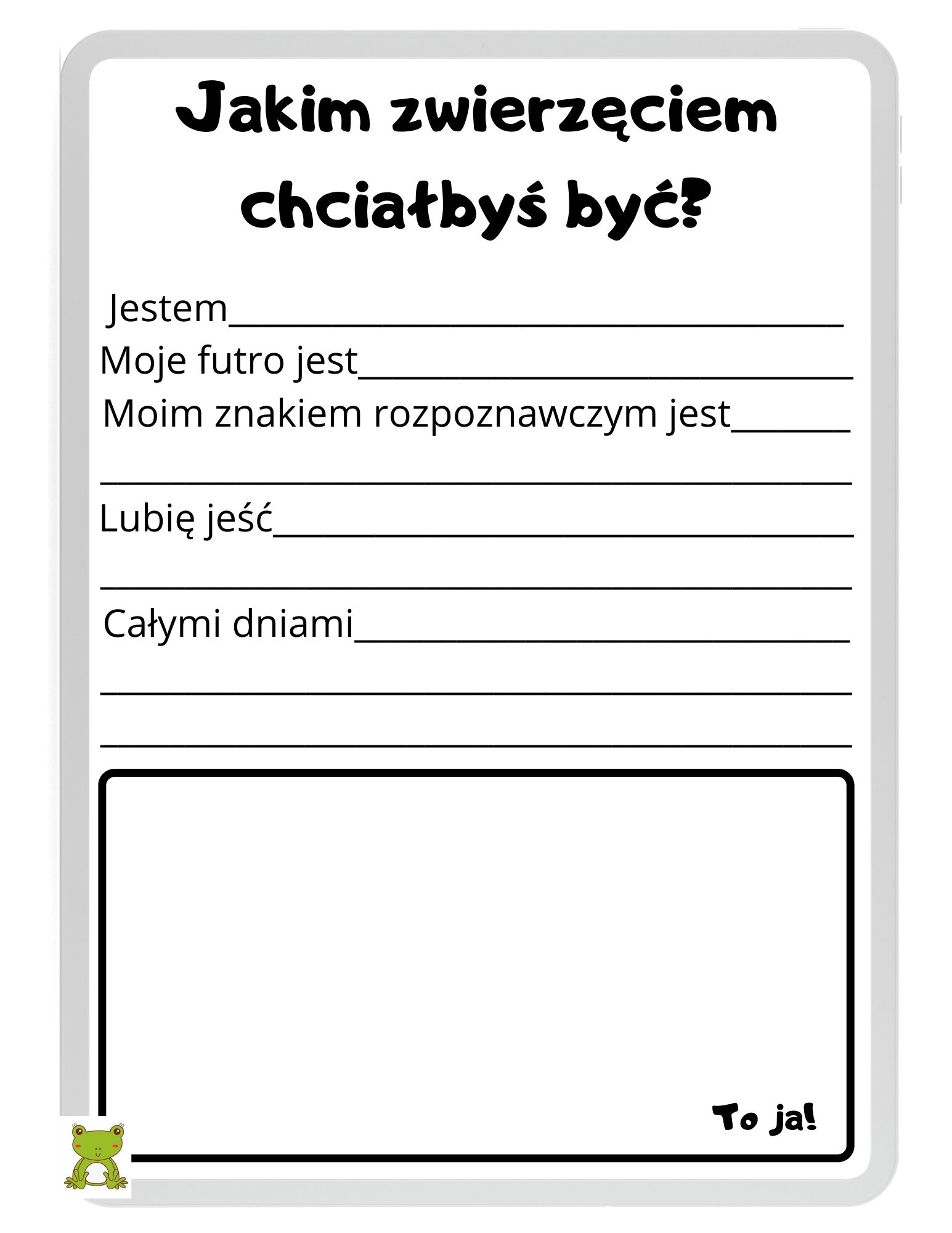 Karta z ćwiczeniem do kreatywnego pisania. Uatrakcyjni każdą lekcję z tematem dotyczącym zwierząt.