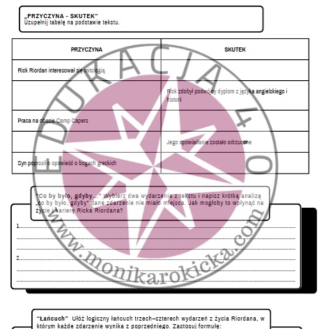 dwa teksty: fragment wywiadu z Rickiem Riordanem oraz tekst biograficzny,