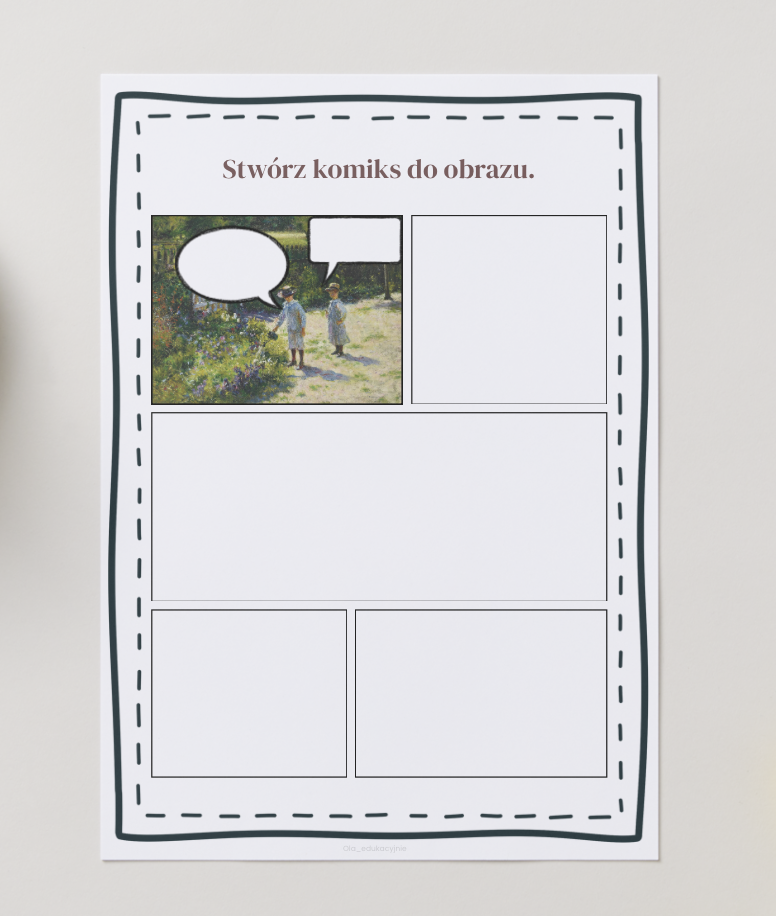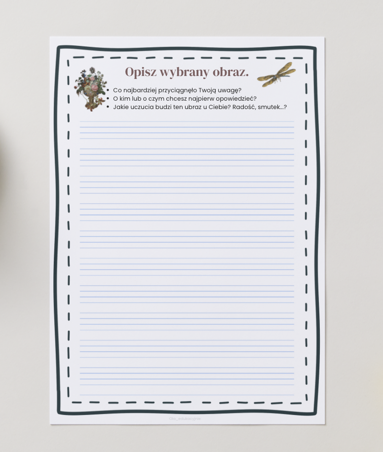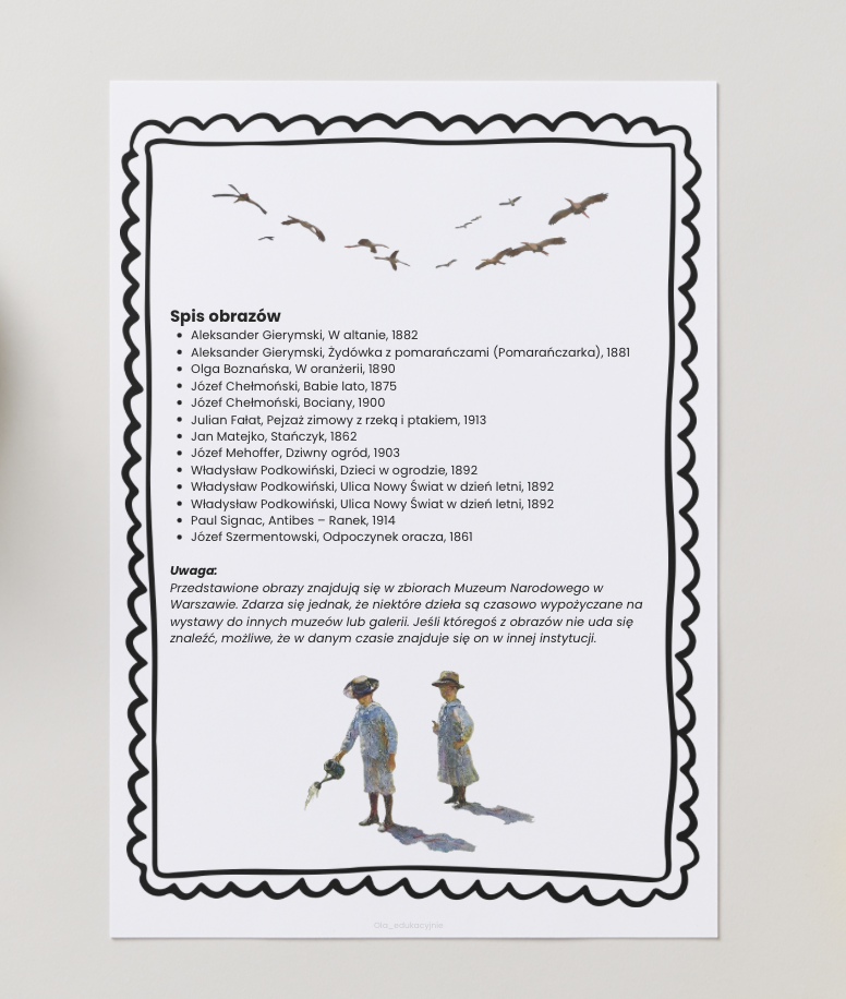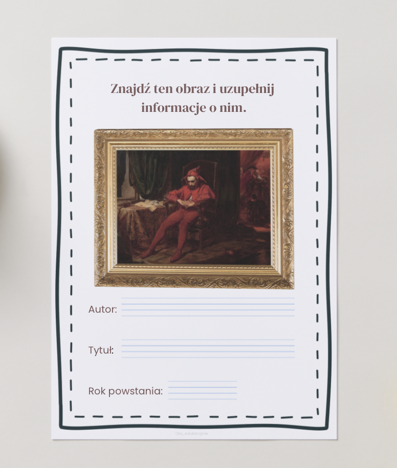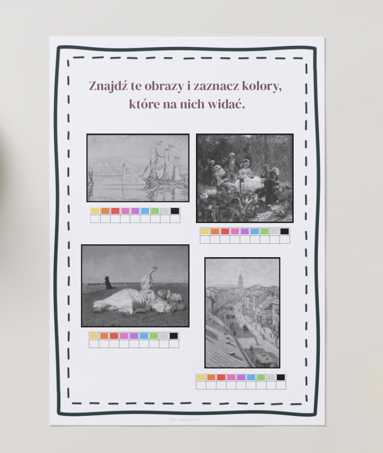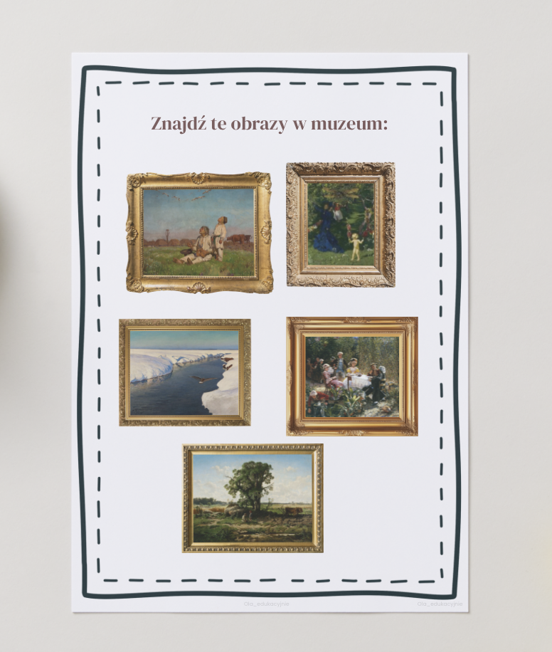 Ten zestaw kart pracy powstał z myślą o tym, aby zwiedzanie muzeum było dla dzieci aktywne, angażujące i pełne odkryć. Zamiast biernego oglądania obrazów uczniowie wykonują różnorodne zadania, które zachęcają do dokładnego przyglądania się dziełom sztuki.