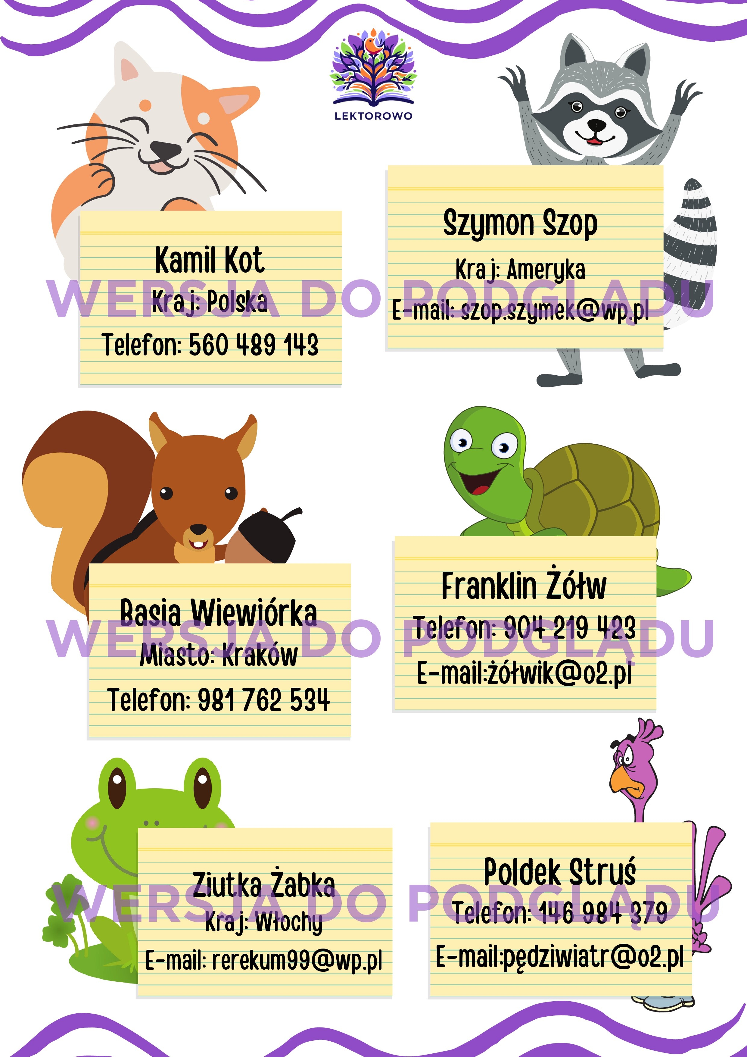 Karta konwersacyjna na pierwsze lekcje języka polskiego. Dzięki niej studenci przećwiczą podstawowe pytania - jak on/ona ma na imię, jak się nazywa, jaki ma numer telefonu/adres email, skąd jest.