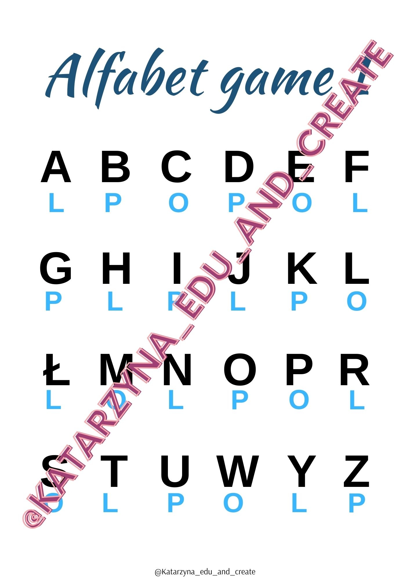 2) Po kolei mów głośno litery alfabetu, jednocześnie wykonując ruch zgodnie z niebieskimi mniejszymi literami wg. legendy: